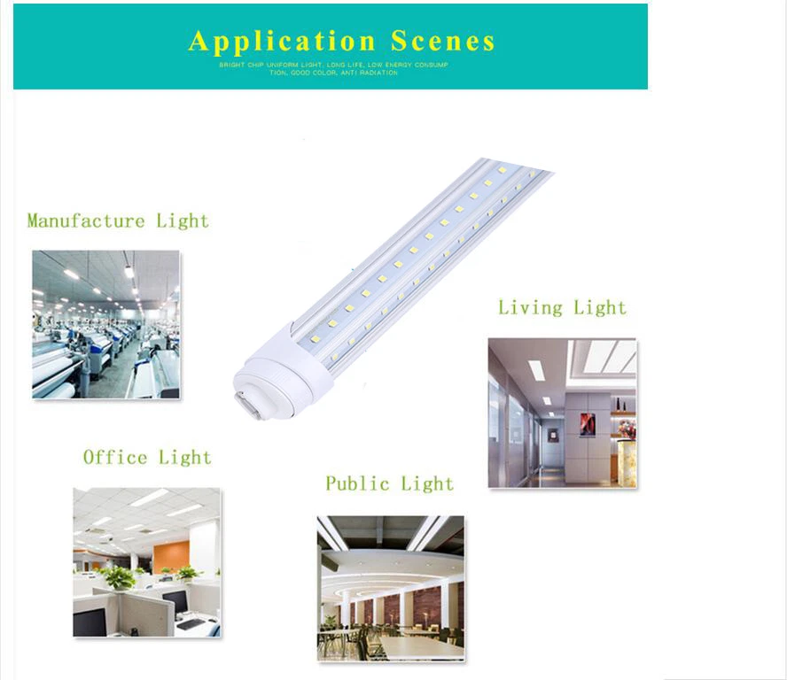 Product Description: Color: 6000~6500K Cool White TYPE: LED R17D HO Base Material: SMD2835 LED chips, Houseing: Aluminum+PC Power Source: AC Voltage: 110 volts Wattage: 65watts Installation Method: R17D Dobule End Power Plug Format: A- US style Special Features: Input Voltage (VAC) :100-240VAC, Input Power (W): 65W Input Frequency (Hz) :50/60 Hz, Working Current: 0.35mA, Type: 2835, Base: R17D Life :L85 @ 50,000 hours, Usage: LED T8 Tube Indoor use only Assembled Diameter: 8 Feet Special note:Installation does not need ballast, if replace the original energy-saving tube, please delete the ballast Package: 4pcs R17D LED tube light 4 Pack 8FT R17D Led Tube Light 65W T8 Rotatable HO Base 8' 8 Foot Led Shop Light Product Description: Color: 6000~6500K Cool White TYPE: LED R17D HO Base Material: SMD2835 LED chips, Houseing: Aluminum+PC Power Source: AC Voltage: 110 volts Wattage: 65watts Installation Method: R17D Dobule End Power Plug Format: A- US style Special Features: Input Voltage (VAC) :100-240VAC, Input Power (W): 65W Input Frequency (Hz) :50/60 Hz, Working Current: 0.35mA, Type: 2835, Base: R17D Life :L85 @ 50,000 hours, Usage: LED T8 Tube Indoor use only Assembled Diameter: 8 Feet Special note:Installation does not need ballast, if replace the original energy-saving tube, please delete the ballast Package: 4pcs R17D LED tube light Payment Delivery details Terms of sales About us Contact us Payment 1.We only accept payment by Paypal. 2.If you pay by paypal with E-check, it normally takes 5 business days to clear, Once your E-check payment clears, your item will be dispatched within 1-2 working days. 3.Payment must be received within 7 days after the auction ended. Delivery details 1.All orders ship within 24 hours after receiving your payment. 2. Fedex shipping from our US warehouse, takes about 3-5business days for delivery. 3.Please verify your address during checkout. We are not responsible for any wrong or undeliverable addresses. Terms of sales We strive to ensure 100% satisfaction for each and every one of our customers. we offer a 30-day 100% money-back guarantee on all eBay orders. If your item isn't just as you wished, simply send it back to us and we'll refund or replace your item. Please note that all returns must be authorized by our Customer Service department. please contact us though message first if you have any problem . About us 1.Our working time is Monday to Friday. 9.30-18.30 BeiJing time am. 2.We will reply you within 24 hours(1work days). 3.We are always been trying to provide best service and reliable products for every customer. Contact us 1. If you are dissatisfied for any reason, please do not be quick to leave negative/neutral feedback. We work hard to make sure EVERY CUSTOMER 100% SATISFIED and resolve any problem for you and always leave positive feedback to all our customers. 2. If you are satisfied with the product you received,please leave us positive feedback and 5 scores DSR. Model 8FT V Shaped Modified Item No Custom Bundle No Lumens 7800lm Type LED Bulb Wattage 65W MPN Does Not Apply Item Length 8FT Brand Unbranded Bulb Shape T8 R17D Manufacturer Warranty 3 year warranty Bulb Shape Code R17D Light Color Cool White Bulb Life Hours 50,000Hours Output Voltage 85-277V Energy Star A+++ LED Chip Code 2835 Material Aluminum IP Rating IP54 Lighting Technology LED Features Energy Saving, Lead-Free (RoHS), Heat Resistant EC Range A+++ - G Voltage 110V Color Temperature 6000k Finish Clear