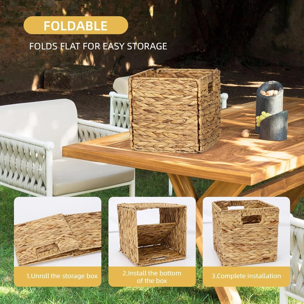 Store New Arrivals Add to Favorite View Feedback Contact 4 Pack 9" Wicker Storage Cubes, Water Hyacinth Baskets, Foldable Wicker Baskets, Storage Basket with Built-In Handles, Handwoven Natural Baskets for Shelves, Kitchen or Outdoor Description Item model number Z06 Part Number Z06-LFTBZ-4P Batteries Required? No Finish Unfinished Color Natural(Water Hyacinth)Medium Product Dimensions 9"L x 9"W x 9"H Material Metal Item Weight 2.97 Kilograms Finish Type Unfinished Number Of Pieces 4 Strong bearing capacity: These wicker storage basket are made of natural water hyacinth and a sturdy metal frame. It has strong bearing capacity and can for books, toiletries, clothes, pantry organization, etc. Ideal for the bathroom, bedroom, and living room Product Dimensions: A package contains two storage baskets. They have two built-in handles. They measure 9 inch lengthwise, 9 inch widthwise, and 9 inch heightwise Environmentally friendly materials: The bathroom wicker baskets are made of water hyacinth, a clean and renewable resource. Add a natural beauty to your home Sturdy Built-in Handles: The water hyacinth basket has two sturdy built-in handles make the basket easy to carry Versatile Pantry Storage: Perfect for storing bathroom toiletries or magazines, media, pet toys, household items, keeping your space looking organized and clean, fits well with a variety of storage compartments and shelves Product Description WEAVELYRICS WICKER STORAGE CUBES A perfect combination of functionality and aesthetics, these baskets can be integrated into different scenes in your home. Detail Show 2 Cut-Out Handles Each wicker storage cube has 2 cut-out handles for easy carrying and organization from room to room. Handmade & Natural The wicker storage cube is handcrafted from natural water hyacinth and sturdy metal frames. Sturdy Buckle Easy to combine, just snap the buckle on and you have a sturdy wicker storage cube! These wicker storage cubes are ideal for organizing kitchen supplies Organize your spices on the mixing table. Organize vegetables on the cooking area. Organize fruit in the dining area. Storage options for outdoor activities These exquisite wicker storage cubes are ideal for storing refreshments and fruit during your outdoor gathering! Add the beauty of nature to your life The aesthetically pleasing wicker storage cubes seamlessly integrate with the natural surroundings and are portable for fruit picking excursions. Stylish appearance, maintain a neat and embellished living space Can be used with a variety of storage units and shelves to make your space look organized and clean. ABOUT US We offer the best prices around on high quality products. Our E-store includes media such as books, movies, music and games while offering electronics, toys, sporting apparel, clothing, tools, general home, garden items and more. SHIPPING We are always working hard to ensure your package arrives as soon as possible. Please understand that some factors like weather, high postal traffic, and the performance of shipping companies are outside of our control. We offer free shipping to the lower 48 states and ship within 2 business days of payment, usually sooner. We do not accept P.O. Boxes. Please provide a physical address. For shipping outside of the continental USA, we only use eBay's Global Shipping Program.The item is shipped to KY and then sent to the rest of the world. International customers are responsible for all duties and taxes. Continue to check out in order to calculate costs for shipping the item to your country. Messages regarding eBay's Global Shipping Program MUST be directed at eBay EXCLUSIVELY. RETURNS We offer a 30-Day Return Policy on items which you are not completely satisfied with. You have the option for a full-refund or an exchange of the item. No returns are available on items shipped outside of the USA. PAYMENT We accept PayPal. CONTACT US This page content is yet to come Please ad us to your favorite seller and visit again later Thank You CUSTOMER SATISFACTION We try our very best to make sure every customer is completely satisfied. If there's a problem, message us! We're happy to help. WE ACCEPT Copyright © 2021 AutoDS. | All Rights Reserved