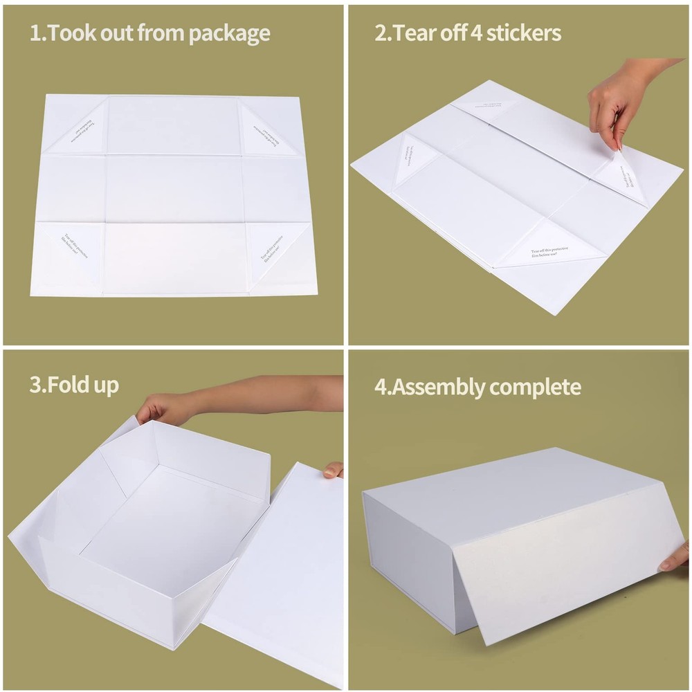 These gift boxes are stunning! The glossy pearl white finish looks so elegant, and the magnetic lids stay secure. They’re sturdy and well-made—no flimsy cardboard here. Love that they come with corner protectors to prevent damage in transit. Perfect for making any gift feel extra special!