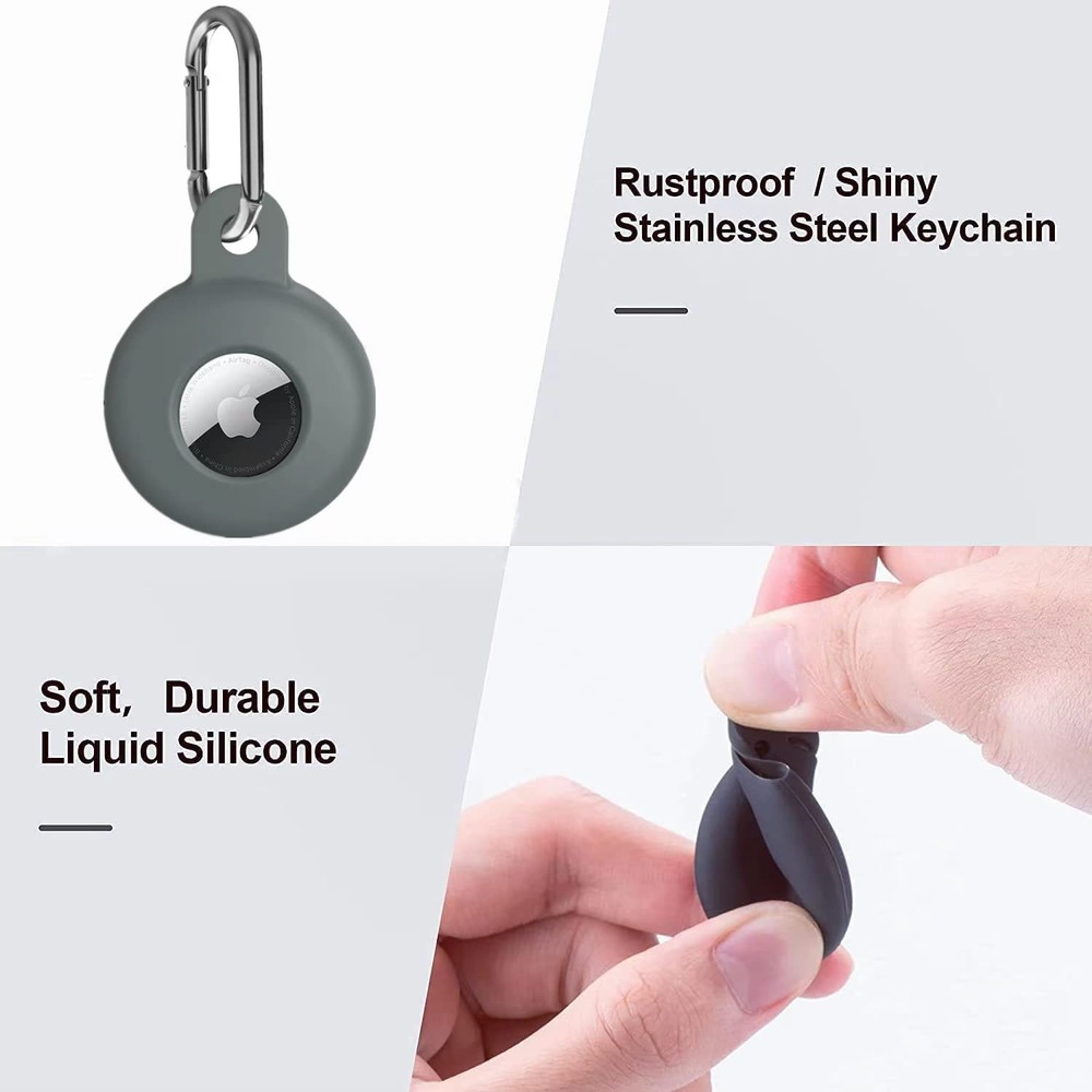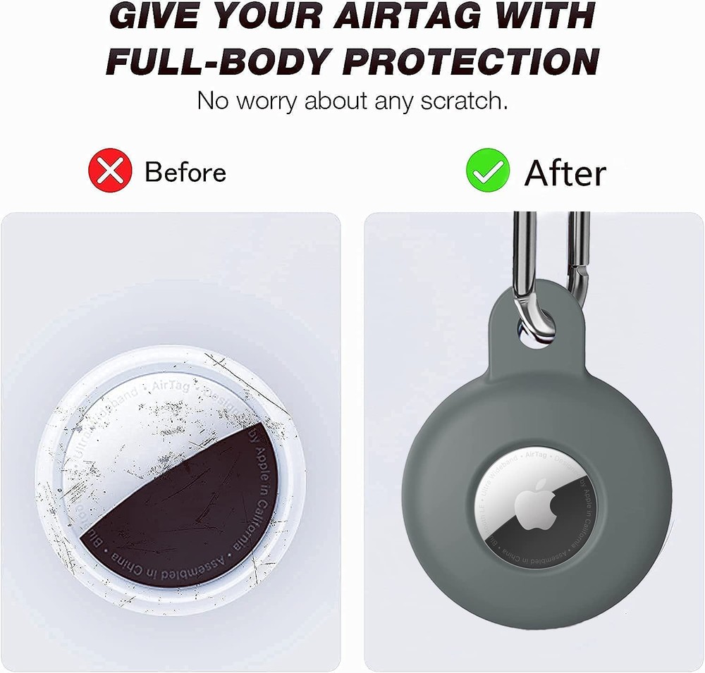[All-round Protection]: The soft silicone Airtag Holder provides stronger cushioning in the event of a collision or fall, and fully protects your Airtag. The small hole design ensures that the Air Tag will not slip off during the event. [High-quality Material]: This silicone Air Tag Holder is made of environmentally friendly liquid silicone, which can be washed with water to ensure repeated cleaning and always maintain a new state. Specially designed for New Apple AirTags 2021. (Note: AirTag is not included) [Wide Use]: The Airtag Keychain uses high-quality carabiner, which is more versatile and robust than traditional key rings. The Airtag Case allows your Air Tag to be easily hung anywhere, such as kids' backpacks, keys, dog collers, etc., anything you think is valuable. [Effective Tracking]: The exposed hole design is very conducive to signal transmission and humanized installation. You can quickly install Airtag and use it to find items you need to track. The Airtags housing does not block the tracking signal. [Quality Service]: If there is any problem with these five airtag protective covers, please feel free to contact us for return or refund. Our team will provide you with a satisfactory solution within 12 hours.