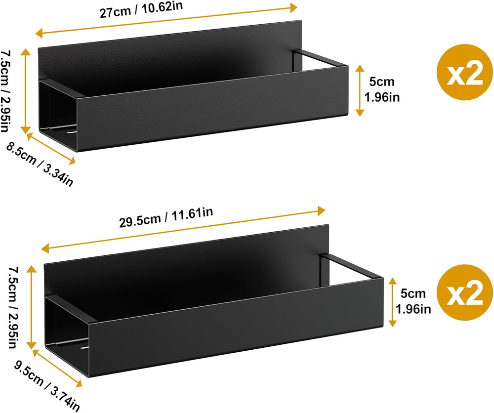 Store New Arrivals Add to Favorite View Feedback Contact 4 Pack Moveable Fridge Magnetic Spice Racks,Metal Black Description Item model number Magnetic fridge organizer Style Modern Pattern Solid Batteries Included? No Usage Kitchen,Cabinet,Door Room Type Kitchen, Classroom, Office, Laundry Room Finish Coated Assembly Required No Product Dimensions 11.61"D x 3.74"W x 2.95"H Material Magnet, Metal Finish Type Coated Item Package Quantity 1 Shelf Weight Capacity 11 Pounds Batteries Required? No Item Weight 2 pounds Size 4 Pack Number of Shelves 4 Special Features Waterprrof, Rust Resistant Special Feature Waterprrof, Rust Resistant Part Number Magnetic fridge organizer Shelf Type Hanging Shelf Mounting Type Wall Mount Color Matt Black Shape Rectangular Recommended Uses For Product Fridge,Washing Machine,Refrigerator,Oven,Coffee Machine,Whiteboard Included Components 2Pcs Large Spice Rack(11.61" * 3.74" *2.95" ), 2Pcs Small Spice Rack(10.62 * 3.34" *2.95" ) Number Of Pieces 4 Sturdy metal,painting finish,rust-proof,corrosion-resistant No drilling or assembly required Super strong magnet on the back Adsorbable on other metal surface 1 shelf supports up to 12 normally spice jar,bearing up to 11 lbs Package including 4 pieces metal black magnetical shelves(2 large,2 Medium) Product Description The video showcases the product in use. The video guides you through product setup. The video compares multiple products. The video shows the product being unpacked. hero-video Merchant Video ABOUT US We offer the best prices around on high quality products. Our E-store includes media such as books, movies, music and games while offering electronics, toys, sporting apparel, clothing, tools, general home, garden items and more. SHIPPING We are always working hard to ensure your package arrives as soon as possible. Please understand that some factors like weather, high postal traffic, and the performance of shipping companies are outside of our control. We offer free shipping to the lower 48 states and ship within 2 business days of payment, usually sooner. We do not accept P.O. Boxes. Please provide a physical address. For shipping outside of the continental USA, we only use eBay's Global Shipping Program.The item is shipped to KY and then sent to the rest of the world. International customers are responsible for all duties and taxes. Continue to check out in order to calculate costs for shipping the item to your country. Messages regarding eBay's Global Shipping Program MUST be directed at eBay EXCLUSIVELY. RETURNS We offer a 30-Day Return Policy on items which you are not completely satisfied with. You have the option for a full-refund or an exchange of the item. No returns are available on items shipped outside of the USA. PAYMENT We accept PayPal. CONTACT US This page content is yet to come Please ad us to your favorite seller and visit again later Thank You CUSTOMER SATISFACTION We try our very best to make sure every customer is completely satisfied. If there's a problem, message us! We're happy to help. WE ACCEPT Copyright © 2021 AutoDS. | All Rights Reserved