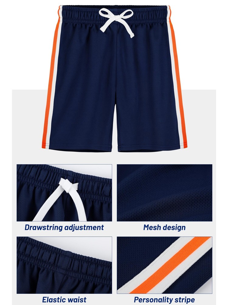 Specifications: Material: 100% polyester Size chart: as shown in the listing Color: as shown in the listing Package Content: 4x Boy mesh shorts Tips: please allow 1-2cm differs due to manual measurement Multi-color boys athletic shorts: These shorts for boys come with 4 different colors, sufficient quantity for daily change and wear in summer. Comfortable boys mesh shorts: The boys sports shorts are made of 100% polyester material that is breathable, quick-drying, soft and skin-friendly. Wide elastic waistband with drawstring boys shorts: These boy shorts are easy to put on and take off, helping boys enjoy sports time and have fun. Widely used shorts: The clothes shorts with exquisite workmanship and classic style, are suitable basketball, football, running and other activities. Stripes design clothes for boys: There are stripes on the side of our boys basketball shorts, which are fashionable and eye-catching, giving children a good wearing experience.