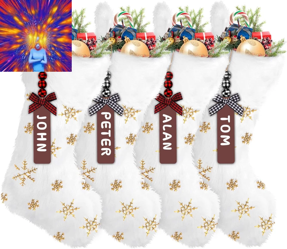 Store New Arrivals Add to Favorite View Feedback Contact 4 Pack Christmas Stockings, 18 Inch Large Faux Fur Sequin Snowflake Christmas Stockings,Snowy White Xmas Stockings Hanging Ornaments for Christmas Holiday New Year Decorations Description Item model number XM310M1P1 Batteries required No Country of Origin China Item Weight 1.17 pounds Color Green Red White Package Dimensions 8.27 x 5.51 x 4.8 inches Upgrade the design : 2 designs christmas stockings come with 2 styles wooden name tags.Blank name tags decorated with wood beads and buffalo check bow,provide you with DIY design space. Christmas stockings match with tags create a joyful and snowy atmosphere on Christmas Eve with your family, friends or colleagues Christmas stockings set: 4 pack white red rustic cable knit stockings with 4pcs wooden name tags, classic and innovative. Add traditional elements to your Christmas decorations .Get ready for the incoming XMAS. Size: personalized stockings are 18inch/46cm in length; cuff width:5.5inch/14cm. Wooden name tags is 4.8inch/12cm x 1.3inch/3.2cm. It has enough space and convenient to put in or take out a lot of items , also good for hanging decoration Material: Christmas Knitted stockings are made of high-quality soft acrylic fabric, soft , elastic,strong and Sturdy. Double-side classic knit pattern make the stockings shaped beautifully. Wide application: christmas white red stockings are suitable for hanging fireplaces mantel, windows, wall, doors,banister,Christmas Tree, hotel, club, bar and so on.Christmas Stockings are large enough for small- gifts, candies or cookies, watch, folding wallet, ties, cards, small toy cars, etc. XIMISHOP 4PCS Christmas Stockings, 18inch Large Personalized Cable Knitted Xmas Hanging Stocking Decorations with Name Tags for Holiday Christmas Party Family Decor (Red and White) ABOUT US We offer the best prices around on high quality products. Our E-store includes media such as books, movies, music and games while offering electronics, toys, sporting apparel, clothing, tools, general home, garden items and more. SHIPPING We are always working hard to ensure your package arrives as soon as possible. Please understand that some factors like weather, high postal traffic, and the performance of shipping companies are outside of our control. We offer free shipping to the lower 48 states and ship within 2 business days of payment, usually sooner. We do not accept P.O. Boxes. Please provide a physical address. For shipping outside of the continental USA, we only use eBay's Global Shipping Program.The item is shipped to KY and then sent to the rest of the world. International customers are responsible for all duties and taxes. Continue to check out in order to calculate costs for shipping the item to your country. Messages regarding eBay's Global Shipping Program MUST be directed at eBay EXCLUSIVELY. RETURNS We offer a 30-Day Return Policy on items which you are not completely satisfied with. You have the option for a full-refund or an exchange of the item. No returns are available on items shipped outside of the USA. PAYMENT We accept PayPal. CONTACT US This page content is yet to come Please ad us to your favorite seller and visit again later Thank You CUSTOMER SATISFACTION We try our very best to make sure every customer is completely satisfied. If there's a problem, message us! We're happy to help. WE ACCEPT