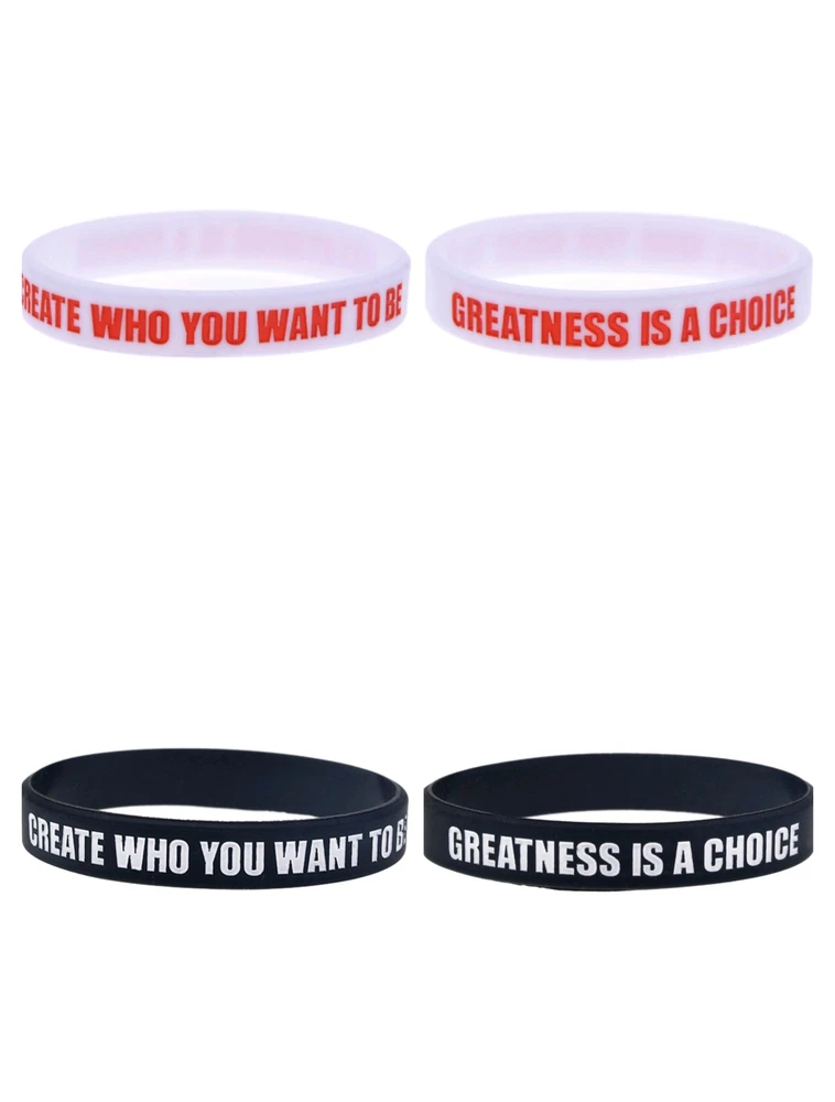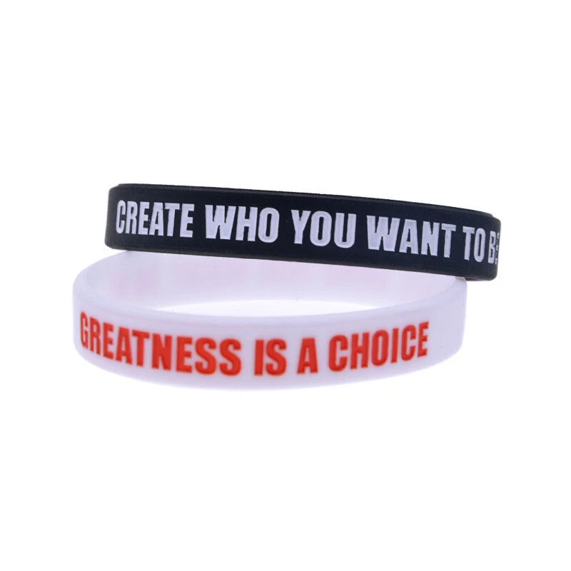 4 Pack Create Who You Want To Be Silicone Bracelets Motivational Wristband Gifts Choose your favourite color from the drop down menu Quantity advertised is for 4 bracelets Adult Approximate Size: 202mm*12mm(8"*0.5") Please order without any hesitation! You can even keep a spare one in your pocket or bag. Note: Due to the difference between different monitors, the picture may not reflect the actual color of the item. Package Included: 4x Motivational Bracelets (Color Optional) If you are interested in more products, please kindly have a look at our eBay shop. Thank You for shopping with us and we hope to see you soon! Payment Delivery details Terms of sales About us Contact us Payment We accept PayPal , Payoneer, VISA, Bank Wire Transfer, etc. We only ship to confirmed eBay addresses . Your eBay address MUST MATCH your Shipping address. Delivery details 1. All items will be shipped within 24 - 48 hours after full payment is received. ( excludes weekends and holidays ) 2. United States Delivery time to below: - SpeedPAK Shipping -------------------------------- 7 - 12 business days 3. Global Delivery time to below: - China Shipping -------------------------------- 15 - 30 business days 4. If you have not received your shipment within Delivery Estimate , please feel free to contact us. We will track the shipment and get back to you as soon as possible with a reply. Our goal is customer satisfaction! Terms of sales About Import Tax: 1. Import duties, taxes and charges are not included in the item price or shipping charges. These charges are the buyer's responsibility. 2. Please check with your country's customs office to determine what these additional costs will be prior to bidding/buying. 3. Some countries' customs may charge taxes for importing good from another country such as Import Duty, Value Added Tax, a Purchase Tax, Customs clearance fees etc. 4. Buyers as importer are responsible for paying such costs. Buyers can not request to cancel the auction or request for refund or resend under this situation. About us Please contact us via eBay Message if you have NOT received item after 30 days , we will check it with post office, and then resend or refund any missing items. If you receive a wrong item or a dead-on-arrival (DOA) item, pls contact us asap for a resend or refund. Contact us If you have any question, pls don't hesitate to email us: Our working time is 9:00-18:00 [Beijing Time] ( Except Weekends ). During that period of time, we will reply to you as quickly as possible. We greatly appreciate your Positive Feedback . Pls do NOT leave negative feedback without asking for help. Our aim is to provide Top Level Customer Service, so we will try our best to solve any problems. Emails received on weekends would be responsed on Monday.