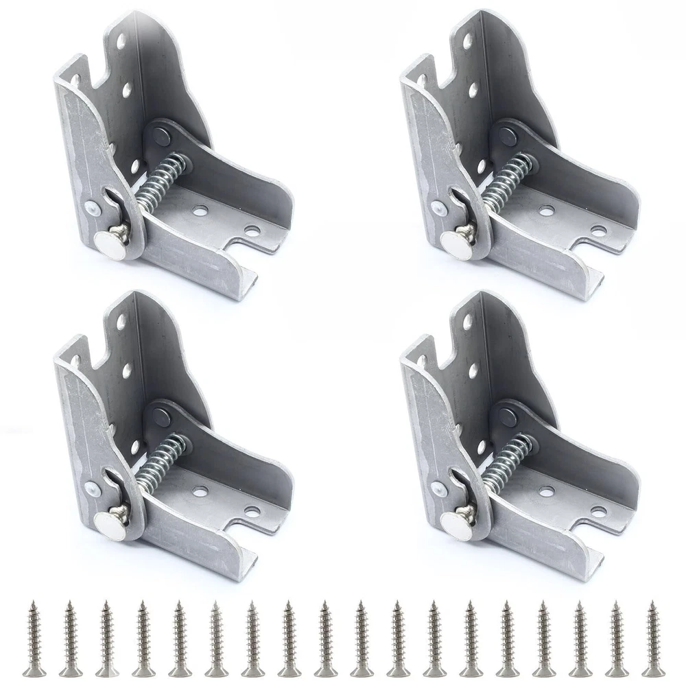 4 Pack Folding Table Leg Brackets, Foldable Self-Locking Hinge Extension Support Brackets Feature: -Easy to install, the package is come with mounting screws, easy and convenience for quick installation. -Self-locking design, with spring lock, ensure safety while using and save storage place when not use. -Wide range of usage, suitable for various furniture legs and some extensive applications. Specifications: Material: Metal Iron Color: Natural Folded Size: 73.3 x 45.8 x 32.4mm / 2.88" x 1.8" x 1.27" (L x W x H) Unfolded size: 67.5 x 46 x 60.6mm / 2.66" x 1.81" x 2.39" (L x W x H) Thickness:2.3 mm / 0.09" Hole Diameter: 5 mm / 0.2" Package Included: 4Pcs x Folding Brackets Sufficient Mounting Screws Notices: 1.The color of the item may have slightly different from the pictures due to different photography light. 2.Due to manual measurement, please allow an error of 1-3mm. Thank you for your understanding. 【What You Will Get】4 x 90 Degree Folding Brackets + Sufficient Mounting Screws. Unfolded size: 67.5 x 46 x 60.6mm/2.66" x 1.81" x 2.39" (L*W*H), Folded size: 73.3 x 45.8 x 32.4mm/2.88" x 1.8" x 1.27". Mounting screws are included in the package for easy installation. 【Premium Material】The Foldable Support Bracket is made of high-quality metal iron. It is sturdy, stable, rust-resistant, and corrosion-resistant, ensuring a long service life. Its versatile design easily various home styles. By using this hinge, your table becomes flexible, allowing you to save storage space effectively. 【Good Loading Capacity】The Folding Table Leg Brackets are constructed with a high-strength steel structure, exhibiting strong toughness and durability. They have a good loading capacity and can support weights of up to approximately 105 kg (230 lbs) per pair. 【Self-Locking Design】The Extension Support Bracket features a self-locking design with a push button and spring mechanism. It allows for easy folding and self-locking functionality. The spring-activated forced lock keeps the bracket stable when it is open. When you need to the table and not in use, simply press the latch to fold it. 【Widely Application】The Folding Self-Locking Hinge is adjustable from 0 to 90 degrees, making it suitable for tables, beds, workbenches, DIY projects, or any furniture legs that require extension. It finds extensive use in spaces with limited room such as kitchens, laundry rooms, retail stores, warehouses, offices, and more.