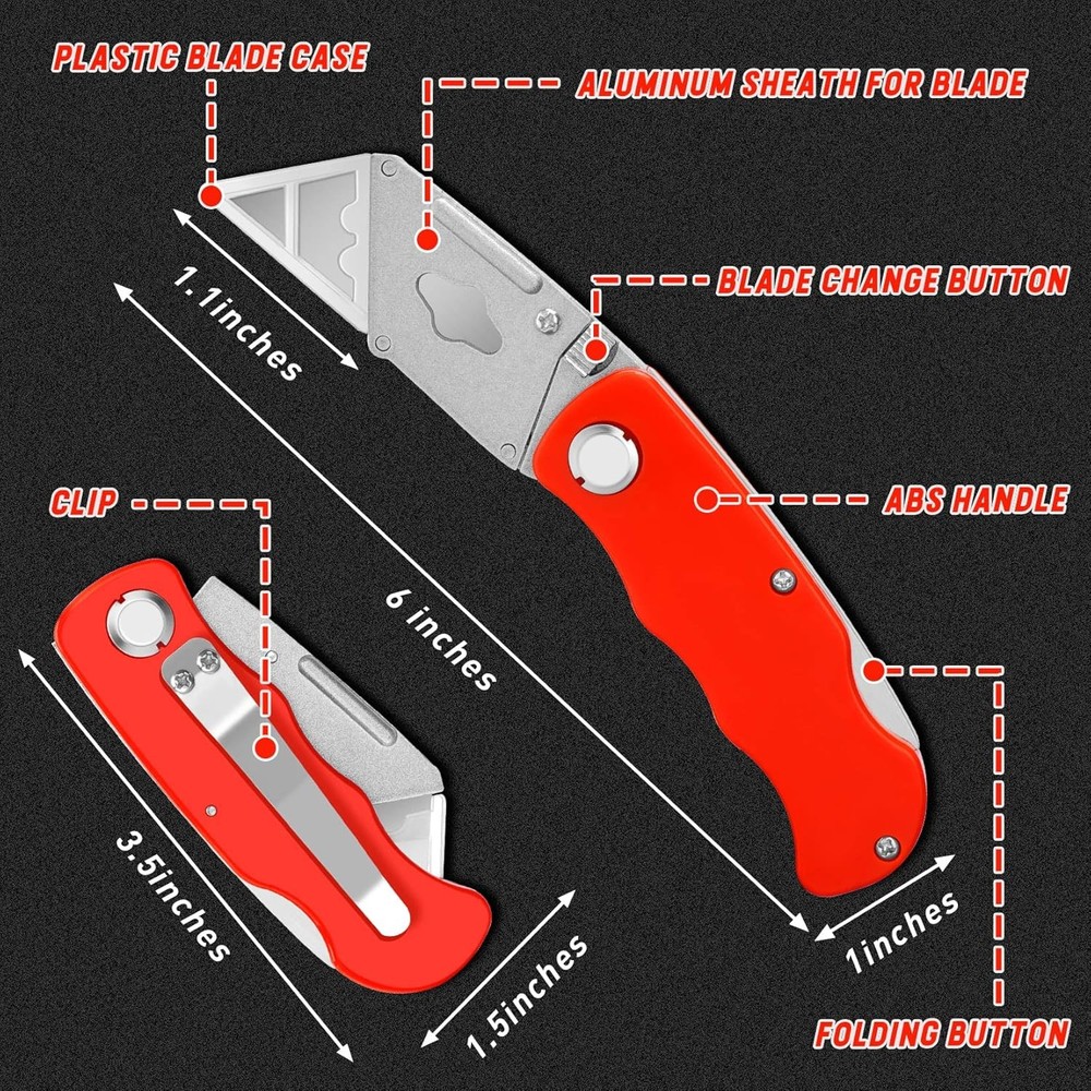 Free eBay listing template designed by dewiso.com 4 Pack Folding Utility Knife with Extra 10Pcs Blades, Box Cutters for Home, Office, Warehouse, Durable Razor Knife, Box Knife, Box Opener, Small Box Cutter with Clip, Navajas de Trabajo FREE AND FAST SHIPPING! About this item Cutting Smoothly and Non-slip: It takes very little time to cut different materials due to the fantastic sharpness of these box cutters. With a self-locking mechanism, you would never worry about the folding utility knife would fold or slipping when you are cutting. Rustless and Long-Lasting: All of these box cutter knife's bodies are made of ABS and aluminum. These materials ensure folding box cutter anti-rust and can be used for a long time. And there are 10 extra blades for your replacement. Quick Change Blades: Just press the button in the middle of the aluminum body of a razor knife, and you can change the razor blades without any obstacles. We recommend you keep the blades shell when changing blades. Great Choice for Carrying: A box cutter with clip is undoubtedly a great choice when you need to carry it out. You can keep the mini box cutter on your belt stiffly. The size of the small box cutter is only 3.5 inches *1.5 inches. It wouldn't bother you, due to their compact. What You Can Use for: The razor knife utility is widely used. It's suitable for many materials, such as paper, cardboard, fabric, foam, and plastic. You can use it as a perfect box opener, package opener, or carpet knife. › Product We offer a 30-Day Return Policy on items which you are not completely satisfied with. You have the option for a full-refund or an exchange of the item. No returns are available on items shipped outside of the US . Shipping We offer Free Shipping to the US and ship within 2 business days of payment, usually sooner. We use UPS express shipping. That's why your products are usually delivered within 3 days . Contact We try our very best to make sure every customer is completely satisfied. If there's a problem , message us! We're happy to help. 24/7 live chat available.