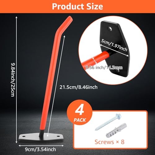 Menu 1. We require immediate payment. 2. We currently accept payment via eBay managed payments only. 3. Once payment is cleared, we will dispatch your shipment within 1-3 business days. Please refer to the "Shipping" tab for more information regarding shipping speed to your destination. 4 Pack Garage Hooks Heavy Duty 10 Inch Tire Rack Wall Mount Holds up to 88Lbs, Garage Storage Hooks for Hanging Bikes, Ladders, Chairs and Bulky Tools Product description 【10 Inches Heavy Duty Garage Hooks】You will 4 pack 9.8 inch long garage hangers with 16 pcs screws and 16 pcs wall plugs. Long and strong enough to hold various tools very sturdily especially large and heavy items like shovel, broom, power tools, garden tool, chair, bike, weed eater, stool, ladder, etc 【Premium Metal Materials】The large garage hooks is made of heavy-duty solid steel construction, which provides Anti-rust, corrosion-resistant. And the vinyl coated orange protects your tools. The tubular double hooks design makes the garage utility hooks more stable than regular single hooks. Rain or shine, this garage storage hooks stands strong 【Space-Saving Organization & Load-Bearing Capacity】The garage hooks for hanging can safely load capacity 88 lbs﹙40 kg﹚.Whether you need to store your garden tools in the basement, garage, shed, or kitchen, this wall-mounted organizer can help you declutter your space and keep your tools neat and accessible 【Easy Installation】Provided with all necessary components for assembly, you only need to follow the steps for installation. Each wall mount hook comes with screws to fit drywall, wall studs, plaster, wood, brick, and concrete walls 【Wide Applications】With large bracket and bold screws, this long utility hooks can meet all the needs of your garage equipment and garden tools organization,strong enough to hold various tools very sturdily especially large and heavy items like shovel, broom, power tools, garden tool, chair, bike, weed eater, stool, ladder, etc PLEASE MESSAGE US IF YOU HAVE ANY OTHER QUESTIONS, AND MANY THANKS FOR READING ALL OF THIS. Copyright ©#. All Rights Reserved.