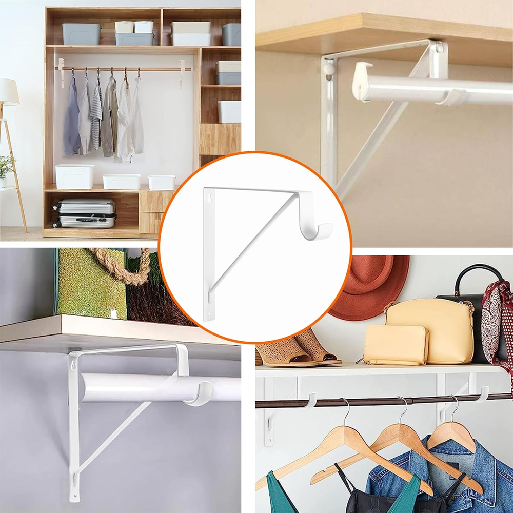4 Pack Heavy Duty Closet Shelf & Rod Brackets, Wall Mounted Closet Shelf