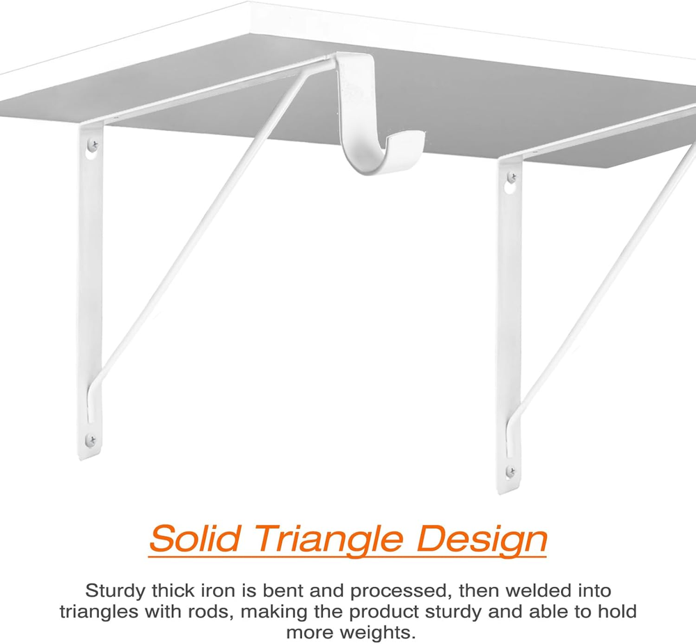 Store New Arrivals Add to Favorite View Feedback Contact 4 Pack Heavy Duty Closet Shelf & Rod Brackets, Wall Mounted Closet Shelf Description Item model number SRB-002-WH Unit Count 4.0 Count Batteries Required? No Finish Painted Mounting Type Wall Mount Part Number SRB-002-WH Color White Product Dimensions 11 x 1 x 10.2 inches Material Alloy Steel Item Depth 11 inches Item dimensions L x W x H 11 x 1 x 10.2 inches Item Weight 4.05 pounds Manufacturer KOVOSCH Size 4 Pack-White Finish Type Painted Brand KOVOSCH Included Components Anchors x 8 Screws x 16 Heavy Duty High-Quality Steel - KOVOSCH heavy duty shelf bracket are made from high quality steel with a fine painted surface, strong and long-lasting use. Classic L-Shaped Brackets - Our closet rod bracket is L-shaped with extra support bars. It helps to create more storage or display room in tight space. The neat style is suitable for all kinds of home decor. Size of Triangle Design Bracket - Closet Rod Bracket Size: L11 in x H10.2 in x W1 in with a 2.4 in hook to hang into closet rods up to 1-1/4 in. construction provides excellent weight capacity for the brackets, which can hold up to 300 pounds per pair. Easy Installation - Simply "hang" the bracket by screwing the top screw halfway on. Then lock the underside of the bracket in place with the screws. Package includes all mounting hardware for easy installation and overall installation will not take more than 15 minutes. Buy with Confidence - Choose KOVOSCH to dress up your home. If there is any quality problem, please feel free to contact us. Product description 1 Up To 1-3/8“ Rod 2 Outstanding Paint 3 Solid Weld Joints 4 Fixing Screw Hole ABOUT US We offer the best prices around on high quality products. Our E-store includes media such as books, movies, music and games while offering electronics, toys, sporting apparel, clothing, tools, general home, garden items and more. SHIPPING We are always working hard to ensure your package arrives as soon as possible. Please understand that some factors like weather, high postal traffic, and the performance of shipping companies are outside of our control. We offer free shipping to the lower 48 states and ship within 2 business days of payment, usually sooner. We do not accept P.O. Boxes. Please provide a physical address. RETURNS We offer a 30-Day Return Policy on items which you are not completely satisfied with. You have the option for a full-refund or an exchange of the item. No returns are available on items shipped outside of the USA. PAYMENT We accept PayPal. CONTACT US This page content is yet to come Please ad us to your favorite seller and visit again later Thank You CUSTOMER SATISFACTION We try our very best to make sure every customer is completely satisfied. If there's a problem, message us! We're happy to help.
