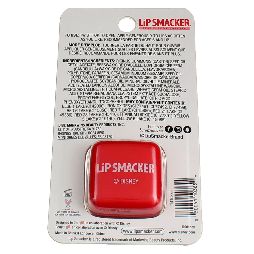 Product Description Experience the exciting world of your favorite Disney characters in this collectible cube-shaped lip balm keychain! -Disney inspired flavors -Cube shaped lip balm -Features a keychain -Collectible balm Ingredients Ingredients/Ingrédients: Ricinus Communis (Castor) Seed Oil, Cetyl Acetate, Beeswax/Cire D'Abeille, Euphorbia Cerifera (Candelilla) Wax/Cire de Candelilla, Flavor/Aroma, Polybutene, Paraffin, Sesamum Indicum (Sesame) Seed Oil, Copernicia Cerifera (Carnauba) Wax/Cire de Carnauba, Hydrogenated Soybean Oil, Mineral Oil/Huile Minérale, Acetylated Lanolin Alcohol, Microcrystalline Wax/Cire Microcristalline, Triticum Vulgare (Wheat) Germ Oil, Stearic Acid, Stevia Rebaudiana Leaf/Stem Extract, Sucralose, Propylene Glycol, Propyl Gallate, Citric Acid, Phenoxyethanol, Tocopherol. May Contain/Peut Contenir: Blue 1 Lake (CI 42090), Iron Oxides (CI 77491, CI 77492, CI 77499), Red 6 Lake (CI 15850), Red 7 Lake (CI 15850), Red 21 Lake (CI 45380), Red 28 Lake (CI 45410), Titanium Dioxide (CI 77891), Yellow 5 Lake (CI 19140), Yellow 6 Lake (CI 15985). Instructions To Use: Twist top to open. Apply generously to lips as often as you like. Product Description Experience the exciting world of your favorite Disney characters in this collectible cube-shaped lip balm keychain! -Disney inspired flavors -Cube shaped lip balm -Features a keychain -Collectible balm Ingredients Ingredients/Ingr√©dients: Ricinus Communis (Castor) Seed Oil, Cetyl Acetate, Beeswax/Cire D'Abeille, Euphorbia Cerifera (Candelilla) Wax/Cire de Candelilla, Flavor/Aroma, Polybutene, Paraffin, Sesamum Indicum (Sesame) Seed Oil, Copernicia Cerifera (Carnauba) Wax/Cire de Carnauba, Hydrogenated Soybean Oil, Mineral Oil/Huile Min√©rale, Acetylated Lanolin Alcohol, Microcrystalline Wax/Cire Microcristalline, Triticum Vulgare (Wheat) Germ Oil, Stearic Acid, Stevia Rebaudiana Leaf/Stem Extract, Sucralose, Propylene Glycol, Propyl Gallate, Citric Acid, Phenoxyethanol, Tocopherol. May Contain/Peut Contenir: Blue 1 Lake (CI 42090), Iron Oxides (CI 77491, CI 77492, CI 77499), Red 6 Lake (CI 15850), Red 7 Lake (CI 15850), Red 21 Lake (CI 45380), Red 28 Lake (CI 45410), Titanium Dioxide (CI 77891), Yellow 5 Lake (CI 19140), Yellow 6 Lake (CI 15985). Instructions To Use: Twist top to open. Apply generously to lips as often as you like. Suggested Use Recommended for ages 6 and up. Warnings WARNING: This product contains chemicals known to the State of California to cause cancer and birth defects or other reproductive harm. WARNING - CHOKING HAZARD - Children Under 3 This toy is not suitable for ages under 3 years. It contains one or more of the following items marbles; small ball; or small parts. Disclaimer The product descriptions and instructions provided by vitabox.com are for informational purposes only and are qualified in their entirety by the information available from manufacturers of the products. You should carefully read all product packaging, and contact the manufacturer with any questions before using a product. While we endeavor to ensure that product descriptions are current, manufacturers sometimes change their products. We are not liable for inaccuracies or misstatements about products. We do not provide medical advice or recommendations. You should not use the information provided by vitabox.com for diagnosing or treating a health problem or disease. If you have or suspect that you have a medical problem, immediately contact your health care provider. Information and statements regarding dietary supplements have not been evaluated by the Food and Drug Administration or any other government agency and are not intended to diagnose, treat, cure, or prevent any disease.