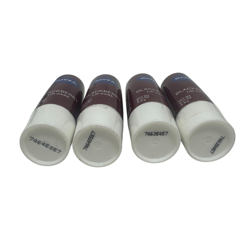 This is a lot of 4 NIVEA Blackberry Lip Care sticks , featuring the highly sought-after discontinued formula made in Mexico. Each tube is 0.17 oz (4.8 g) and bears the BDF (Beiersdorf) factory stamp on the base. A rare find for loyal users of this beloved lip balm, known for its rich berry tint , moisturizing feel , and smooth glide . Whether you're stocking up or searching for your favorite discontinued product, this 4-pack is the perfect opportunity to secure a true NIVEA original. Features: Lot of 4 lip care tubes Discontinued formula Made in Mexico Tamper Sealed Net weight: 0.17 oz (4.8g) each UPC: 072140022853 Shipping & Returns: Free US Shipping 30 day returns (must be returned in original condition) Price: $21.99