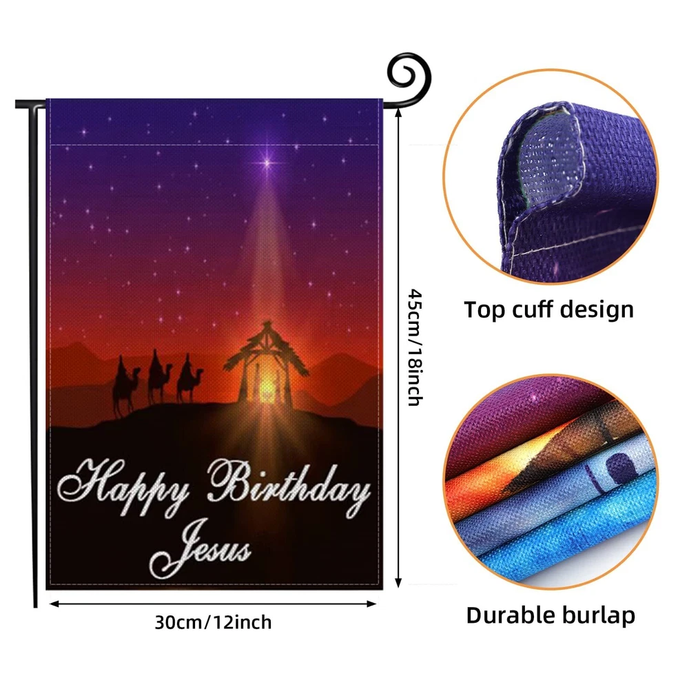 Feature: Fall for jesus he never leaves garden flag. We choose the thickest burlap material for our jesus garden flags which makes it more durable and more attractive, weather-resistant as well as fade-resistant, the durable material to save you costly replacements year afteryear. You will immediately notice how amazing the print is. The color and image are very sharp and vivid. Weather Resistant,Our seasonal garden flags are resistant to any amount of rain, snow, pollen, or harsh sunlight, it stayed perfectly intact even in a bad storm, suitable for outdoor use. Specification: Material: Durable Burlap Cloth Use: Indoor and outside decor. Style: Nativity Scene Burlap Flag Type :hocus pocus party supplies Occasion:Thanksgiving Day, Christmas, Nativity Scene, Easter Size:12 x 18 Inch Package included: 4 * Garden flag(Not include a flag stand or pole). Notes: Manual measuring, please allow 1-2cm error. 【Yard Decoration】: 12x18 inchs.This O Holy Night Christmas garden flag perfect for any deck, patio, porch or and make charming decorative statements for any backyard, lawn or garden. 【Quality Material】: Outdoor nativity scene yard flag is made of premium quality burlap looking machine washable Spun Polyester, which is weather resistant as well as UV / fade-resistant. 【Double Sided】: This Christmas Winter Believe Jesus Garden Flag patterns on both sides are different.The letters and image are correctly visible and readable from both sides.You can see our craftsmanship spirit in every decorative welcome buffalo check plaid rustic burlap garden flag. 【Classic Designs】: 4 Different styles of nativity scene garden flags, different copywriting can best meet your needs, you can hang them anywhere you want.(FLAG STAND NOT INCLUDED). 【Quality Service】: If you are not satisfied with our products, 100% money back guaranteed. Please us for any issues, we will solve it in time. We are here for you and happy to help!