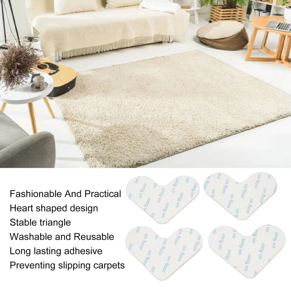 Feature: 1. Fashionable Practical: Rug tape with heart shaped design ,which adds a touch of love to your home while providing an effective solution for slippery carpets. 2. Easy to Install: Simply remove the backing paper and stick the tape to the bottom of your carpet. Then remove the film covering the silicone and press the carpet firmly onto the floor. 3. Washable and Reusable: Carpet tape are washable and reusable, providing a long lasting and economical solution for preventing slipping carpets. 4. For Various Flooring: Rug tapes are suitable for use on a range of flooring materials, including tiles, hardwood, laminate, and marble, making them ideal for door mats, kitchen, and bedroom carpets. 5. Superior Grip: Use the triangle stabilizing design and provide superior grip and anti slip capabilities, while the thin design ensures they are unobtrusive and will not detract from your decor. Specification: Item Type: Rug Tape Color: White Quantity: 4pcs Package List: 4 x Rug Tape