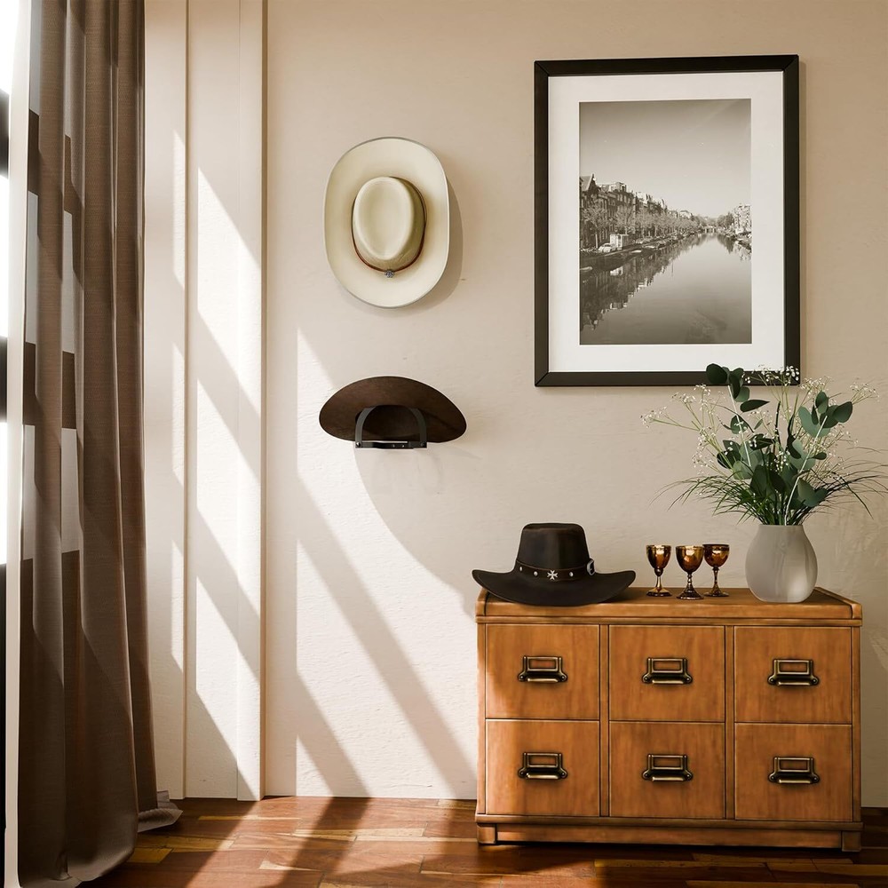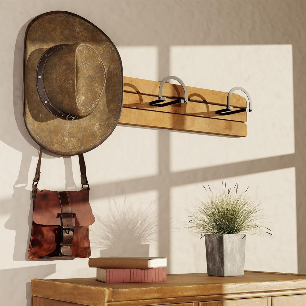 Love this cowboy hat rack! It keeps my hats in perfect shape while adding a cool western vibe to my wall. The sturdy alloy steel hooks hold them securely, and the black finish looks sleek. Super easy to mount—no more tossing hats around! Fast shipping was a bonus. Highly recommend for any cowboy hat lover!