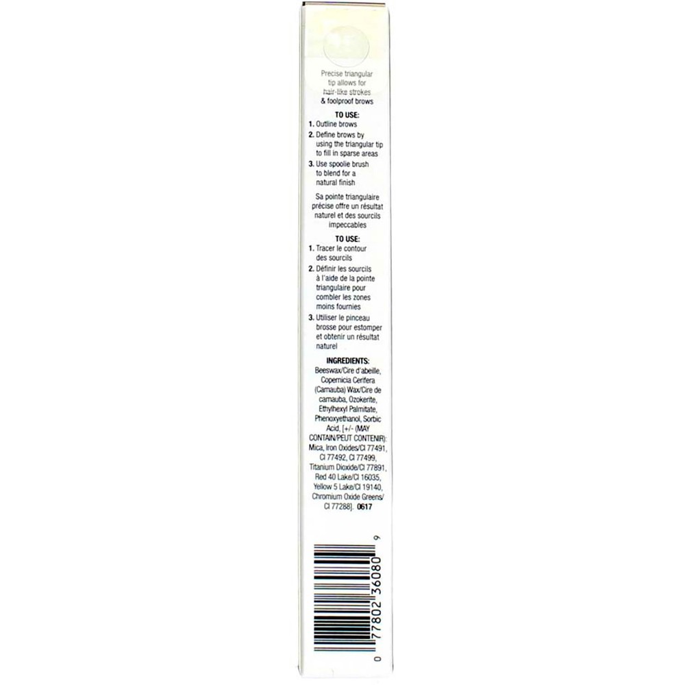 Product Description Insta-worthy! Fill in and define your brows with our unique triangular pencil tip. It creates strokes small enough to look like your finest hairs and sharpens the edges of those brows with rub-resistant pigments. Brush and blend it all out with the pencil's built-in spoolie. When you’re done, the tip retracts for quick-and-easy storage in your makeup bag. Product Description Insta-worthy! Fill in and define your brows with our unique triangular pencil tip. It creates strokes small enough to look like your finest hairs and sharpens the edges of those brows with rub-resistant pigments. Brush and blend it all out with the pencil's built-in spoolie. When you‚Äôre done, the tip retracts for quick-and-easy storage in your makeup bag. Disclaimer The product descriptions and instructions provided by vitabox.com are for informational purposes only and are qualified in their entirety by the information available from manufacturers of the products. You should carefully read all product packaging, and contact the manufacturer with any questions before using a product. While we endeavor to ensure that product descriptions are current, manufacturers sometimes change their products. We are not liable for inaccuracies or misstatements about products. We do not provide medical advice or recommendations. You should not use the information provided by vitabox.com for diagnosing or treating a health problem or disease. If you have or suspect that you have a medical problem, immediately contact your health care provider. Information and statements regarding dietary supplements have not been evaluated by the Food and Drug Administration or any other government agency and are not intended to diagnose, treat, cure, or prevent any disease.