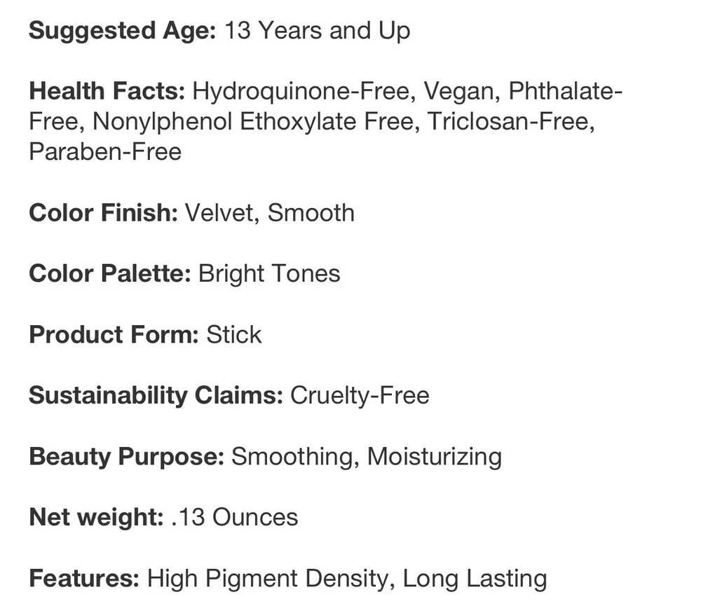 Long Lasting, Animal Cruelty-Free, Phthalate-Free, Moisturizing, Dermatologist-Tested, Hydrating, All Natural Ingredients, Contains Vitamins, Vegan, Paraben-Free