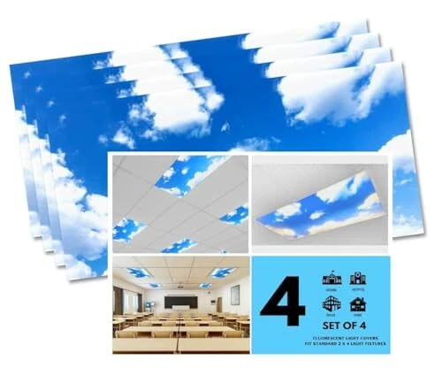 Menu 1. We require immediate payment. 2. We currently accept payment via eBay managed payments only. 3. Once payment is cleared, we will dispatch your shipment within 1-3 business days. Please refer to the "Shipping" tab for more information regarding shipping speed to your destination. - 4 Pack of Fluorescent Light Covers - 2x4 Film Insert for Ceiling Light Diffuser Panels - Sky Clouds - for Classrooms and Offices - Decorative Lighting (4) Product description CREATED BY TEACHERS : USA SMALL BUSINESS STANDARD 2 x 4 FITTING - GREAT FOR CLASSROOMS & OFFICE: Add to your cloud overhead light cover in classroom or office lighting to Improve Classroom organization & management with these cloud light covers for fluorescent lights standard size 4 x 2. Great classroom decor & accessory. Works great for kindergarten, 1st grade and elementary. Also Great for Dentist Office or Hospital ceiling light covers. REDUCE HARSH GLARE THAT CAUSES HEADACHES: Eliminate the harsh glare, flickers, eyestrain, headaches, and anxiety caused by typical ceiling lights & fluorescent lighting with Shade Magic fluorescent light diffuser! BACKLIT FLEXIBLE FILM INSERT: The film is very simple to install your Shade Magic decorative light cover. Simply unlock the tabs connected to your overhead light, insert the panel and put the cover back. It is a very easy process, you will need a ladder to reach lights. Teachers add to your supply list. These light covers for teachers will be great decor for classroom items. Helps classroom management, classroom organization, and easy classroom storage at the end of the year. CLOUD COVER: HQ image printed onto panels fit easily over standard ceiling fixtures creating a soothing, calming environment. PLEASE MESSAGE US IF YOU HAVE ANY OTHER QUESTIONS, AND MANY THANKS FOR READING ALL OF THIS. Copyright ©#. All Rights Reserved.