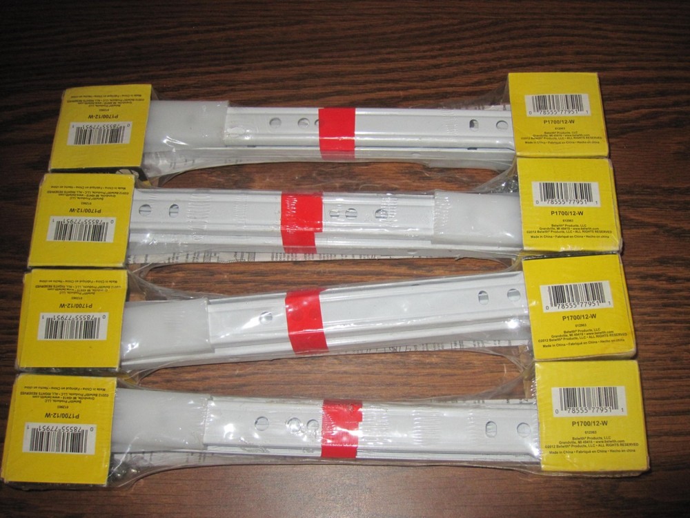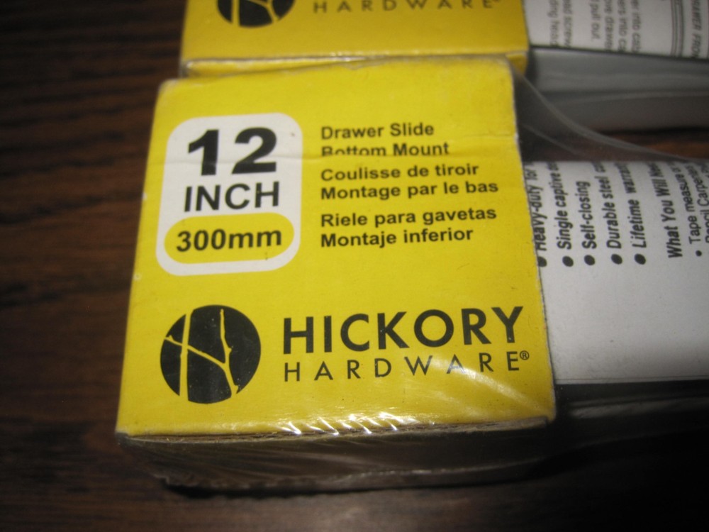 FOR SALE: 4 Pairs HICKORY HARDWARE P1700/12-W; 12" White Bottom Mount Drawer Slides New Sealed Packages / Never Opened 75 LB Load Capacity