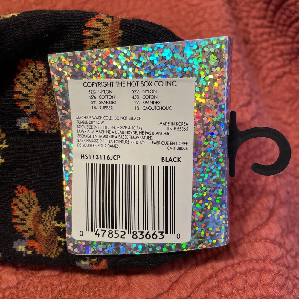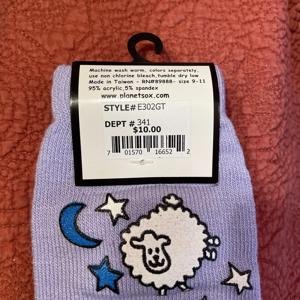 This set includes 4 pairs of socks in a multicolor acrylic blend material: pink fuzzy striped, a heart pattern, a turkey pattern, and a sheep/moon pattern with a toe style design. Suitable for women in sizes 6-10, these machine washable socks are ideal for casual wear throughout all seasons. The socks have novelty themes, adding a fun touch to your outfit. New with tags.