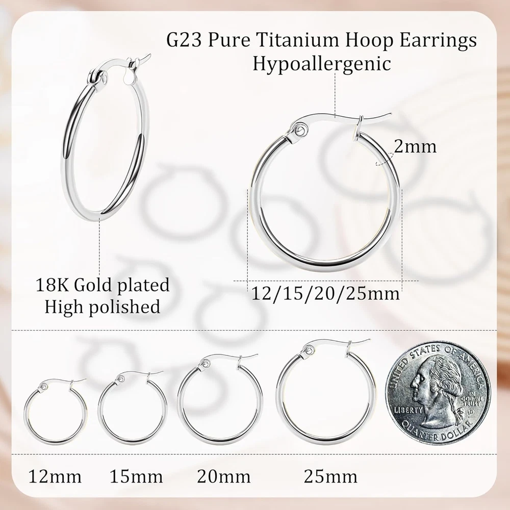 Store New Arrivals Add to Favorite View Feedback Contact Fast deliveries to the customer's home Quality customer service John Make the customers happy! 4 Pairs Titanium Hoop Earrings for Sensitive Ears Hypoallergenic Pure Titanium Earrings for Women Men G23 Lightweight Small Huggie Hoop Earrings Set 12MM 15MM 20MM 25MM Description Product Description 4Pairs Pure Titanium Hoop Earrings for Sensitive Ears 12MM 15MM 20MM 25MM Hypoallergenic Titanium Earrings for Women Men Silver Huggie Hoop Earrings Material:G23 Pure Titanium Color: Silver/Gold/Rose Gold/Black Inner Diameter Size:12/15/20/25MM Advantage: Lightweight/Hypoallergenic/Nickel-free Lead-free Suitable for Sensitive Ears Shortcoming: Titanium Hoop Earrings will be darker in color than stainless steel Pure Titanium Hoop Earrings Gold Titanium is the perfect jewelry material. Titanium itself is characterized by its high hardness, Lightweight, and Hypoallergenic properties, And will not rust even if you put it in seawater. Especially suitable for sensitive ears. Hypoallergenic Titanium Hoop Earrings for Women diameter 12MM 15MM 20MM 25MM Are they hypoallergenic? Yes, These hypoallergenic titanium Hoop Earrings are Especially suitable for sensitive ears. Will these titanium hoop earrings eventually rust? These Hoop earrings are made of G23 titanium, which is a durable and ideal metal for long-lasting jewelry design. What are the advantages and shortcoming of titanium material compared with stainless steel material? Advantages: More hypoallergenic and more suitable for sensitive ears; lightweight.Shortcoming: Titanium jewelry is darker than stainless steel Gem Type No Gemstone Color Silver Material Titanium Metal Titanium Department womens Back finding Hinged Hoop Package Dimensions 1.57 x 0.79 x 0.39 inches; 0.35 ounces ABOUT US We offer the best prices around on high quality products. Our E-store includes media such as books, movies, music and games while offering electronics, toys, sporting apparel, clothing, tools, general home, garden items and more. SHIPPING We are always working hard to ensure your package arrives as soon as possible. Please understand that some factors like weather, high postal traffic, and the performance of shipping companies are outside of our control. We offer free shipping to the lower 48 states and ship within 2 business days of payment, usually sooner. We do not accept P.O. Boxes. Please provide a physical address. For shipping outside of the continental USA, we only use eBay's Global Shipping Program. The item is shipped to KY and then sent to the rest of the world. International customers are responsible for all duties and taxes. Continue to 'check out' to calculate costs for shipping the item to your country. Messages regarding eBay's Global Shipping Program MUST be directed at eBay EXCLUSIVELY. RETURNS We offer a 30-Day Return Policy on items in which you are not completely satisfied with. You have the option of a full-refund or an exchange of the item. No returns are available on items shipped outside of the USA PAYMENT We accept PayPal. CONTACT US This page content is yet to come Please ad us to your favorite seller and visit again later Thank You CUSTOMER SATISFACTION We try our very best to make sure every customer is completely satisfied. If there's a problem, message us! We're happy to help. WE ACCEPT