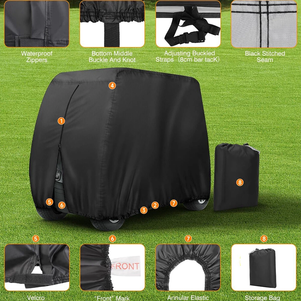4 Passenger Golf Cart Cover Enclosure Waterproof For Evolution Classic 4 Plus Specification Color: Black Material: 190T Polyester Size (L*W*H) : 112" x 48" x 73" / 285*122*185 cm Feature Fitment: This universal cover is compatible with most major brand two-seater golf carts, for Yamaha, Honda, Club Car, and EZGO. Easy to Access with Zipper: Features a rear zipper for effortless access without removing the cover, equipped with a waterproof zipper made from high-grade alloy to prevent rusting, offering superior practicality. Great Protection for Outdoor: Protects your golf cart from rain, UV rays, sand, snow, dust, fog, scratches, and harsh weather conditions. Includes a carrying bag for convenient storage. Material: Constructed from polyester with a waterproof coating, ensuring protection against rain, UV rays, sand, snow, dust, fog, scratches, and severe weather. Breathable: Designed with dual air vents for improved airflow during extended storage, reducing the risk of overheating and moisture accumulation. Package Included 1 x Golf Cart Cover 1 x Storage Bag •We accepted Online Payment payment ONLY •We will ship your order within 24 hours after receiving your verified payment (Excluding Weekends and Public Holidays) •The estimated delivery time is within 3-7 working days(not including the weekend). •United States:3-5 working days(not including the weekend) •If you fail to receive over 7 days, please contact us and we will try our best to help •Return items must not be used or have any sign of abuse or intentional damage. •Buyer is responsible for all return shipping charges. •We reserve the right not to refund S&H when the item has been posted. We are a company run business with more than 10 years experience in whole sale of quality Motorcycle And Car Parts & Accessories Specification Color: Black Material: 190T Polyester Size (L*W*H) : 112" x 48" x 73" / 285*122*185 cm Feature Fitment: This universal cover is compatible with most major brand two-seater golf carts, for Yamaha, Honda, Club Car, and EZGO. Easy to Access with Zipper: Features a rear zipper for effortless access without removing the cover, equipped with a waterproof zipper made from high-grade alloy to prevent rusting, offering superior practicality. Great Protection for Outdoor: Protects your golf cart from rain, UV rays, sand, snow, dust, fog, scratches, and harsh weather conditions. Includes a carrying bag for convenient storage. Material: Constructed from polyester with a waterproof coating, ensuring protection against rain, UV rays, sand, snow, dust, fog, scratches, and severe weather. Breathable: Designed with dual air vents for improved airflow during extended storage, reducing the risk of overheating and moisture accumulation. Package Included 1 x Golf Cart Cover 1 x Storage Bag PAYMENT •We accepted Online Payment payment ONLY SHIPPING •We will ship your order within 24 hours after receiving your verified payment (Excluding Weekends and Public Holidays) •The estimated delivery time is within 3-7 working days(not including the weekend). •United States:3-5 working days(not including the weekend) •If you fail to receive over 7 days, please contact us and we will try our best to help Terms of Sale •Return items must not be used or have any sign of abuse or intentional damage. •Buyer is responsible for all return shipping charges. •We reserve the right not to refund S&H when the item has been posted. ABOUT US We are a company run business with more than 10 years experience in whole sale of quality Motorcycle And Car Parts & Accessories On Mar 22, 2025 at 17:22:20 PDT, seller added the following information: