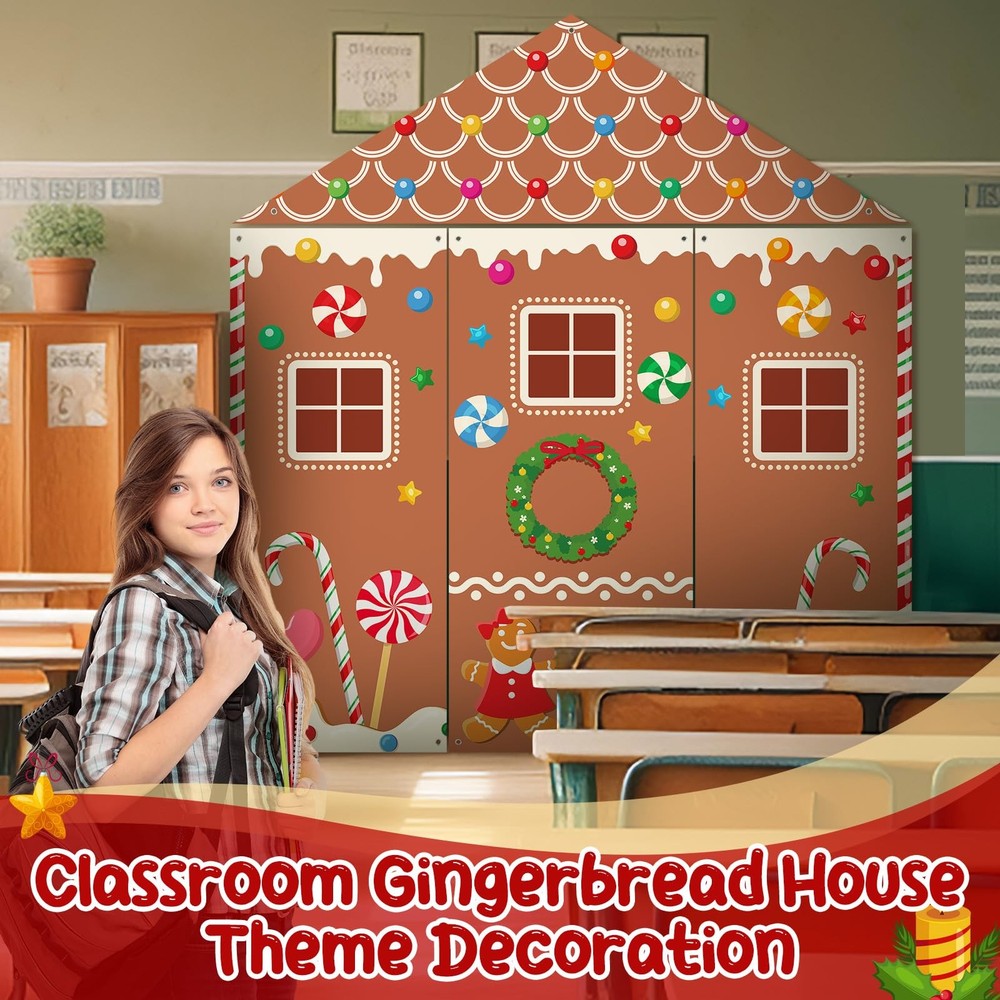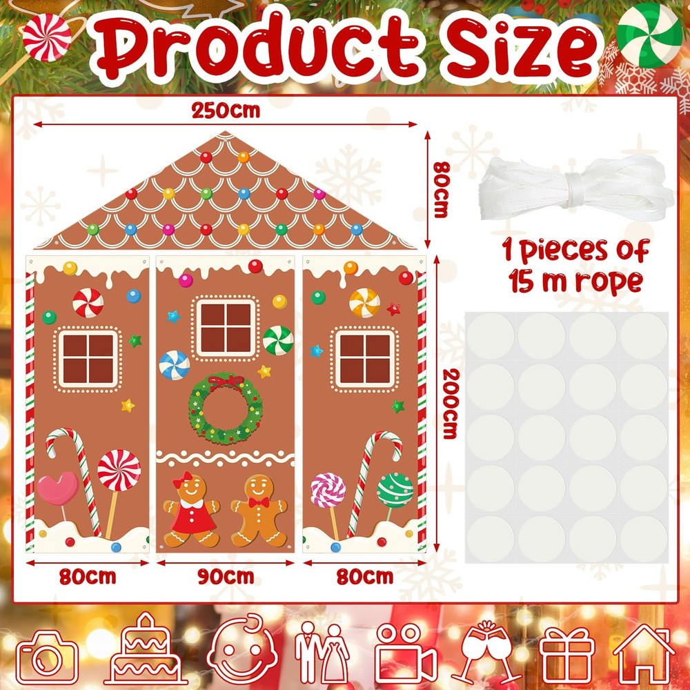 Features: Each shape of Christmas door cover comes with careful edging, reliable material is not easy to fade, wear and break, which is convenient for you to storage without the needs of spending too much time in caring it. 4 Christmas gingerbread decor can use be applied to combination or separated, each part can serve as a nice decoration, with high flexibility, allowing you to fully unleash your creativity and imagination. Specifications: Color: multicolor Material: polyester Size: Christmas candy background cloths: 80 x 200 cm Gingerbread man background cloth: 90 x 200 cm Triangular roof background cloth: 250 x 80 cm White rope: 15 m Package includes: 1 x Christmas background cloths set Notes: Manual measurement, please allow slight errors on size. The color may exist a slight difference due to different screen displays. Christmas Home Decoration: you will receive a Christmas gingerbread door background set consisting of 3 rectangular backgrounds, 1 triangular background, a 15 meter long white rope, and 35 glue points; The Christmas door decoration design includes brown gingerbread houses and colorful Christmas candy; Classic combinations and charming decorations can meet your indoor and outdoor Christmas decoration needs, easily stand out Appropriate Size: the size of 2 Christmas candy background cloths in the Christmas door decoration is 80 x 200 cm, the size of 1 gingerbread man background cloth is 90 x 200 cm, and the size of 1 triangular roof background cloth is 250 x 80 cm; The background fabric is large enough to easily decorate various doors, walls, or other places, meeting your decoration needs Easy to Hang: each corner of the 4 gingerbread house decorations cloths has copper holes and comes with a 15 m long white rope and sufficient number of glue points, making it easy to hang and secure to anything you want, not just the door but anywhere else Quality Materials: the Christmas house hanging banner is made of polyester fabric, which can be cleaned, ironed and reused; After using it this year, you can fold it up without taking up space for convenient storage, and you can continue to decorate Christmas next year Widely Applicable: Christmas door covers are suitable for various places and occasions during Christmas, whether indoors or outdoors, whether at home, school, office or other places, they can help you easily create a Christmas party atmosphere; After the decoration is completed, it can also serve as a background for your selfies and group photos, helping you take beautiful photos