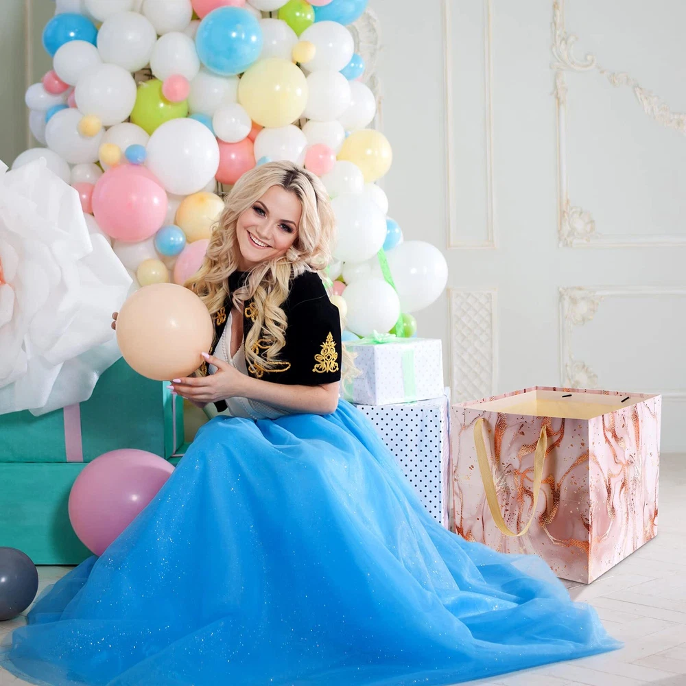 Features: These large square gift bags have art marble printing design with gold thread ornament which are classic and beautiful, while square shape and cotton handle make bags more comfortable and reusable. Ideal gift package: No matter if you are a worker, woman or man, you can use the marble gift bags to hold your gifts and carry them to attend wedding, party, holiday activity, anniversary, which can make your gift look more beautiful and delicate. Specifications: Material: white cardboard Color: as pictures show Size: about 30 x 30 30 cm/ 11.8 x 11.8 x 11.8 inch Quantity: 4 pieces Package includes: 4 x Colorful different large gift bags Notes: Manual measurement, please allow slight errors on size. The color may exist a slight difference due to different screen displays. What You Will Get: this package contains 4 pieces jumbo gift bag, measuring about 30 x 30 30 cm/ 11.8 x 11.8 x 11.8 inch; These big gift bags can various stuffs, and they have sufficient quantity for you to use and replace in daily life or important events Sturdy and Serviceable: the wedding gift bag is made from white cardboard which is thick, solid and safe, not easily faded or worn, hard wearing and reusable; These square cute gift bags have special design with cotton handles, and provide a soft texture and comfortable experience to your finger Marble Pattern: the beautiful giant gift bags have colorful gilt marble print designs, gorgeous, mysterious and charming; Your gift can have a sense of art and charm by being packed with this kind of huge birthday bags, which are classic, simple, elegant and stylish Easily : this anniversary gift bag can be fully folded when you are not using it, minimizing the storage space; They have enough room to various kinds of things, you can fold them in your drawers and cupboards or hang on the wall and door Applicable Occasion: really big gift bag with marble design can hold large gifts, flowers, household items, large clothing, plush animals or stylish dolls; The bag can be applied on many occasions like bridal shower, baby shower, birthday party, anniversary celebration, wedding, holiday party, annual party and more important occasions, adding a fun and elegant atmosphere