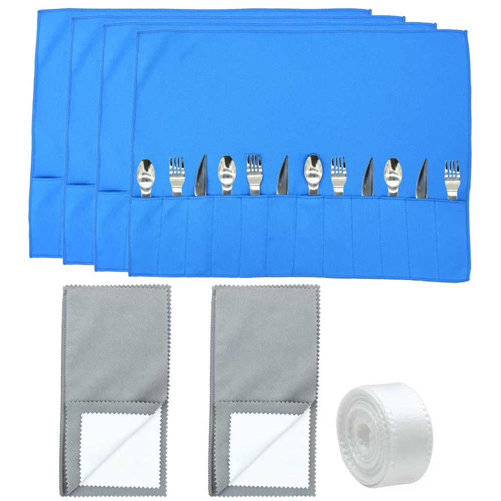 Features: Smart choices as gifts: These silverware drawer organizers and brown cleaning cloths can be applied as exquisite and decent gifts for your family members, friends, relatives, neighbors, colleagues and more. The storage bags will be helpful for them to keep their flatware safe. Serve you for a long time: They protect your cutlery from rusting or oxidative discoloration, extending the life of your cutlery. The cutlery bag contains six deep slots for easy storage of different cutlery. The cutlery bag can be rolled up for storage, saving space while being easy to use and carry. Tips: We do not recommend washing our silverware storage bags with water. Because of the material, washing will wash away the rust prevention ingredients. These silverware storage bags will lose their effectiveness. Specifications: Silver storage bag main material: double sided velvet cloth Silver polishing cloth: double sided velvet cloth Color: Silver storage bag: blue Silver polishing cloth: brown Size: Silver storage bag size: approx. 31 x 23 cm/ 12.2 x 9.1 inches Silver polishing cloth: approx. 28 x 17.5 cm/ 11.02 x 6.89 inches Package includes: 4 x Silver storage bags 2 x Silver polishing cloths 1 x roll ribbon Warm notes: Please allow slight size errors due to manual measurement. The colors may exist slight difference due to different screens. 【Package Includes】This package comes with 4 pieces silverware bags, 2 pieces silver polishing cloths and 1 roll ribbon, the quantity is sufficient to better meet your daily usage and replacement needs, you can also share them with others 【Size Information】The silver flatware storage bags are approx. 50 x 48 cm/ 19.69 x 18.9 inches, the cleaning cloth is approx. 28 x 17.5 cm/ 11.02 x 6.89 inches, proper in size and light in weight, suitable for different cutlery sizes, please confirm the sizes you need before buying 【Long Serving Time】The silverware storage bag and the silver cloth are mainly made of double sided velvet fabric, containing rustproof material, odorless and comfortable, reliable and corrosion resistant, light in weight and good in shape, not easy to break or deform, and can be applied for a long time 【Avoid Corrosion】These silver storage bags can can effectively avoid your tableware from corrosion or oxidation, and these bags adopt zipper design, which can effectively ensure the cleanliness of tableware 【Meet your Diversified Needs】Our storage for silver flatware is available for storing most kinds of silver flatware, such as spoons, forks, silverware, flatware, tableware and other cooking utensils, in addition, it can also be applied to hold jewelry and other silver items
