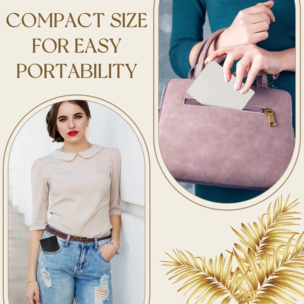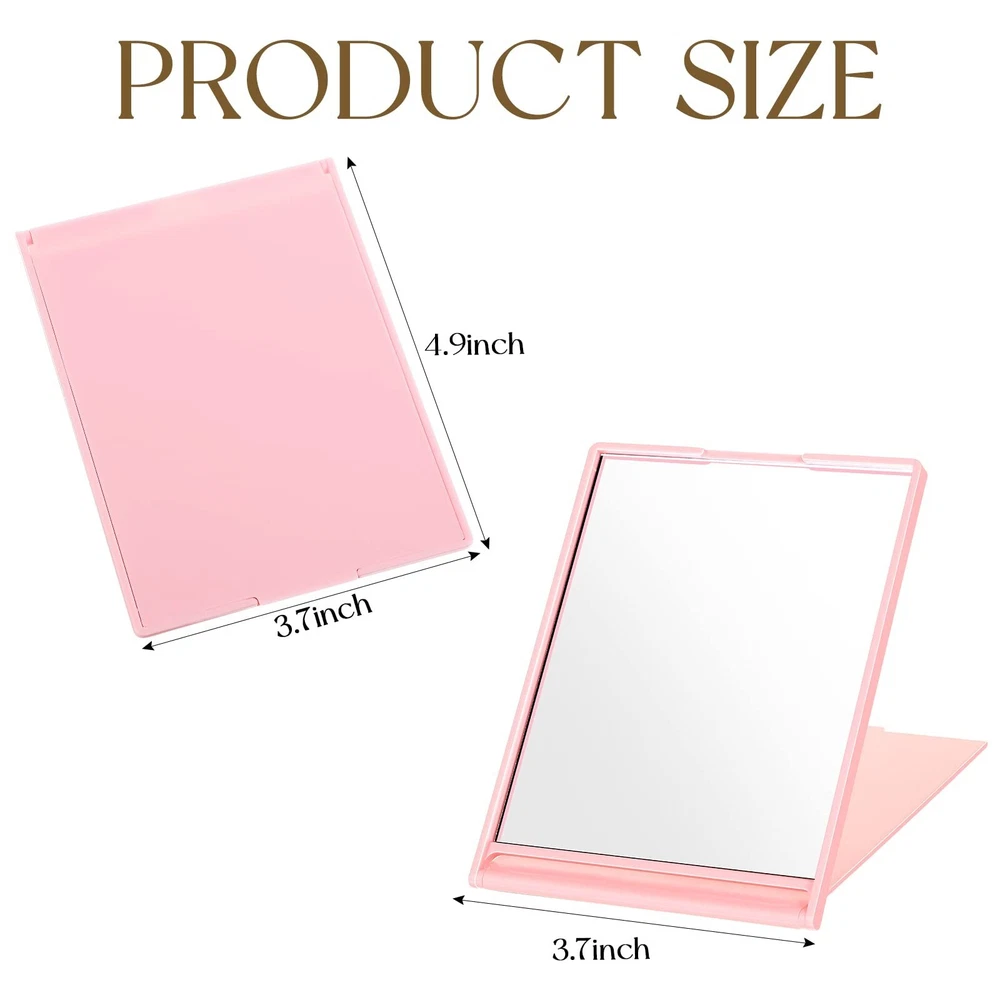 4 Pcs Small Folding Travel Mirror Rectangle Compact Mirror Portable Pocket Mirror Small Makeup Folding Mirror Stand up Vanity Mirror for Women Girls Daily Use, Pink White Green Black, 4.9 x 3.7 Inch Product Details Brand: Yinkin Room Type: Bedroom Shape: Rectangular Product Dimensions: 4.9"L x 3.7"W Frame Material: Glass Package Dimensions : 8.43 x 5.55 x 0.67 inches; 10.55 ounces Manufacturer : Yinkin Portable Size: The compact mirror measures 4.9 x 3.7 inches, making it lightweight and easy to carry around. Multiple Colors: Comes in a set of 4 mirrors in pink, black, white, and green, allowing you to share with friends or have a backup. Folding Design: The square mirror folds in half for easy storage and portability. Clear View: The glass mirror provides a clear view for applying makeup or checking your appearance. Multipurpose Use: Can be used for makeup application, dressing up, or as a handheld mirror during travel or at home. Features: Exquisite gift: This travel makeup mirror can be sent as a daily gift for your friends, very convenient and practical, cute and charming, suitable for most boys and girls. Everyday decoration: This vanity travel mirror can be placed in the bedroom or on your office desk that be matched with other stickers to create your own style. You can paste your favorite characters or letters on the mirror, which looks very beautiful. Specifications: Material: glass and plastic Color: pink, black, white and green Size: about 12.5 x 9.5 cm/ 4.9 x 3.7 inches Package includes: 4 x Folding travel mirror Notes: Manual measurement, please allow slight errors on size. The color may exist a slight difference due to different screen displays.