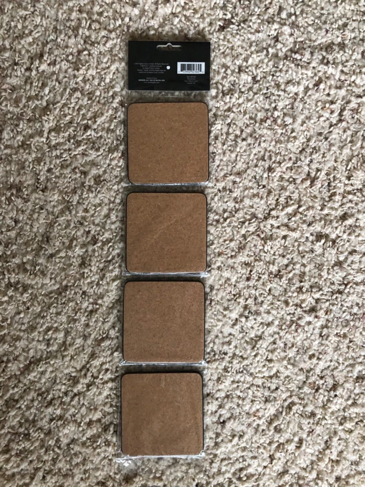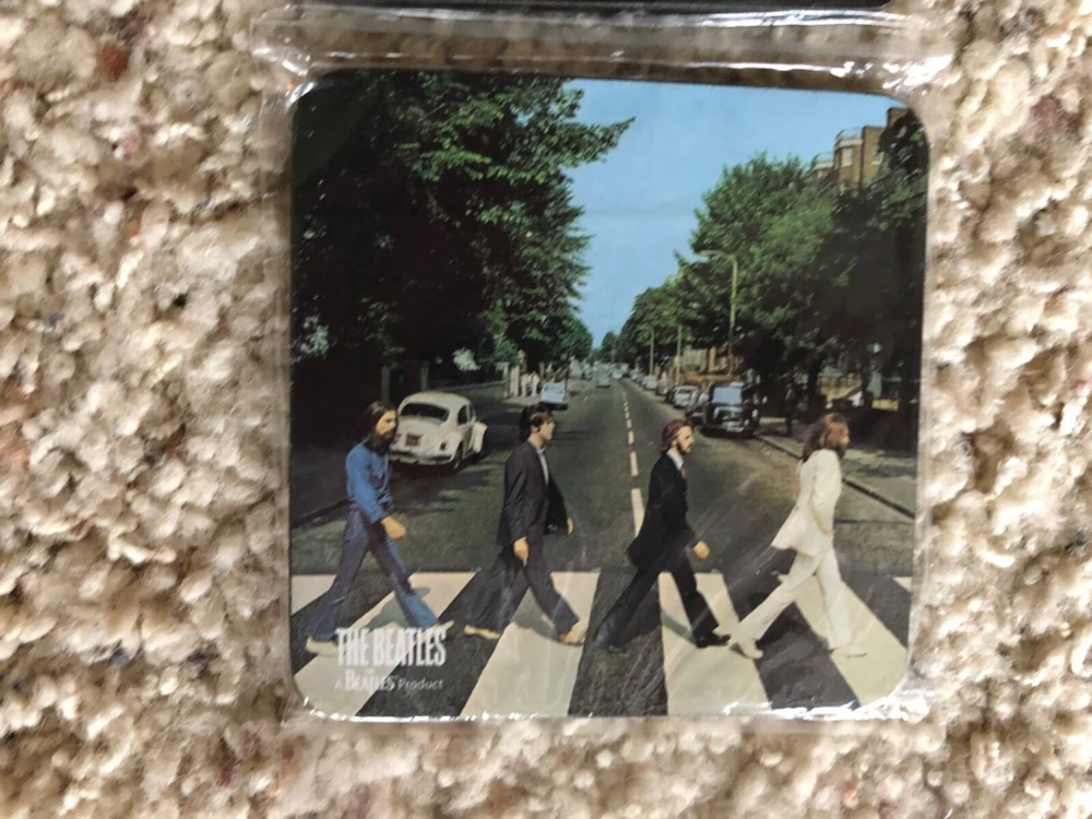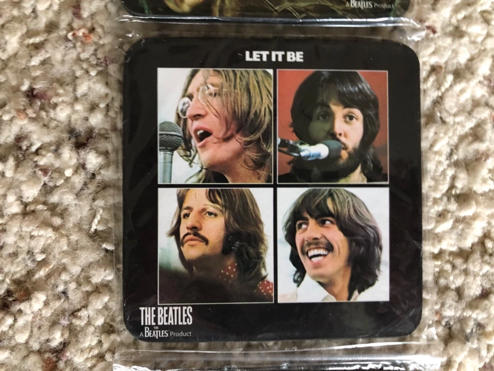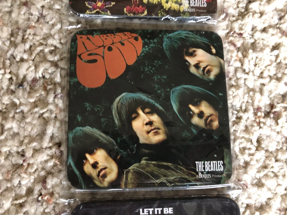Here are 4 Beatles album cover coasters sealed in package. Each coaster is 3 7/8 X 3 7/8 inches. Has cork back. Thanks for looking.