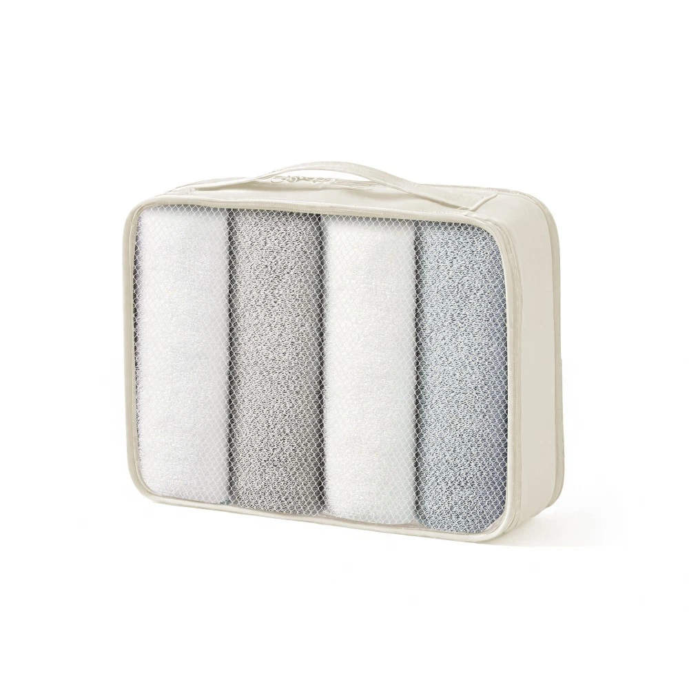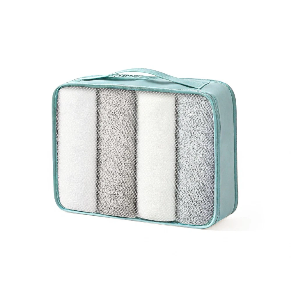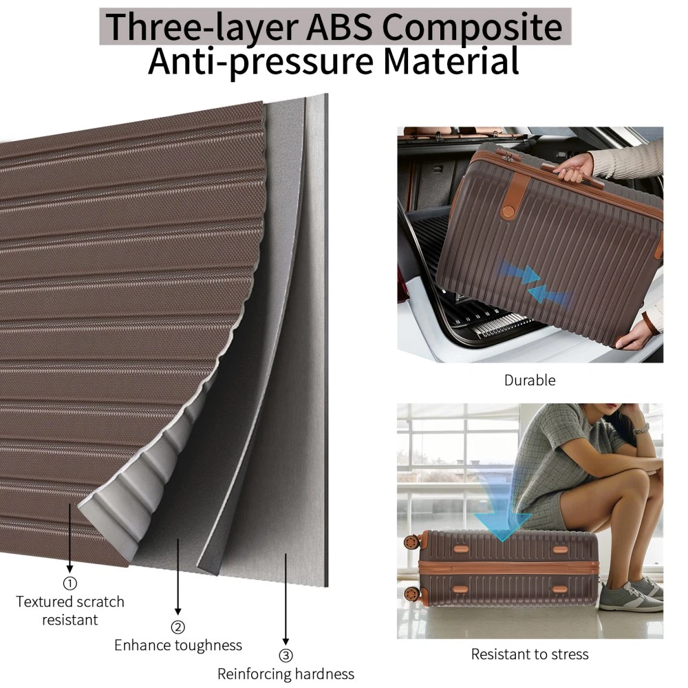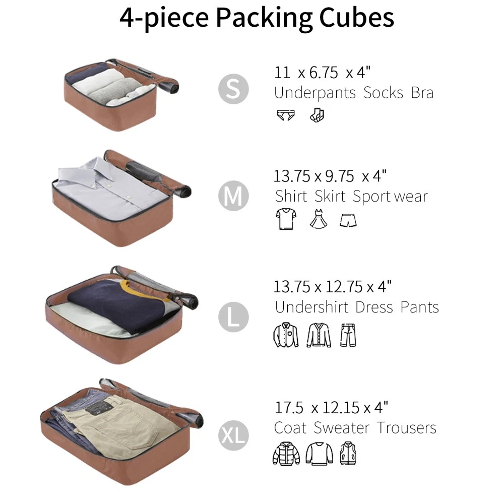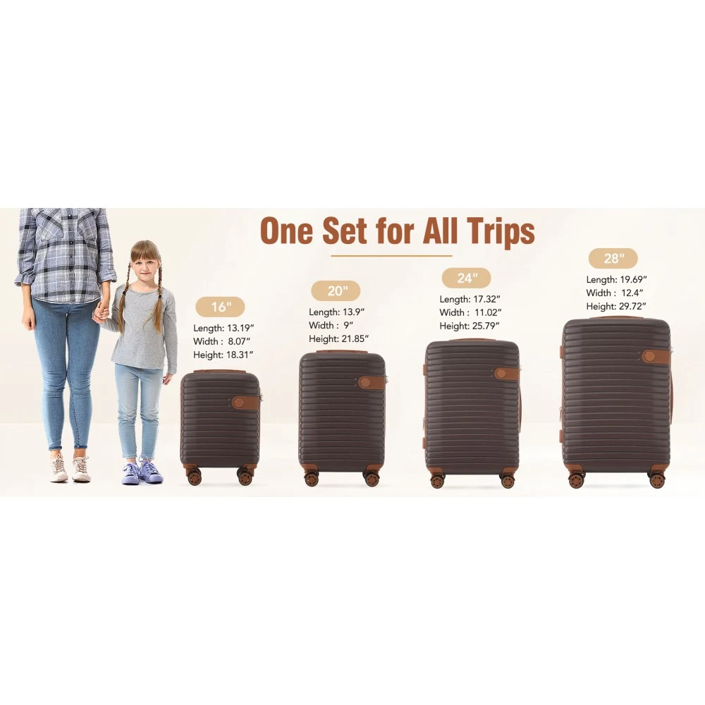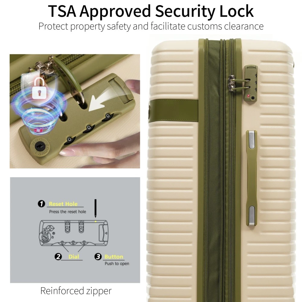 The 4-piece luggage set consists of 16-inch, 20-inch, 24-inch, and 28-inch luggage to meet your different travel needs. 3-level telescopic handle can be adjusted to meet the needs of different heights. Ideal for family travel. Superior quality, silent-running, multi-directional silent spinner wheels assure smooth maneuverability. 360° double wheels are more durable and adaptable to various road conditions. Bring comfort to your journey. Upgraded size 10 zipper chain teeth are wider and the bite is tight. Pulls smoothly and effectively prevents chain heads from falling off and zippers from tearing. Paired with a 3-dial TSA lock, it provides security and convenience for travel.anti-aging feature of built in UV-radiation protection for long lasting usage for years to come. 4 packing boxes keep your clothes, toiletries, and other items separated, making the interior more organized. 24-inch and 28-inch suitcases can be expand with 20% extra space to accommodate more souvenirs. 4 suitcases can be nested inside each other to save space for your convenience. HOW TO RESET THE TSA COMBINATION LOCK 1. The lock is set to 0-0-0 at the factory. 2. Make sure the dials are rotated at 0-0-0 or any other code you've set before resetting it. 3. Use a pen or something pointed to press the reset hole adjacent to the dials. 4. Enter your new code by rotating the dials 5. Push the key button once and your code is now set. 6. Scramble the dials and test your new code to be sure the correct one is set.