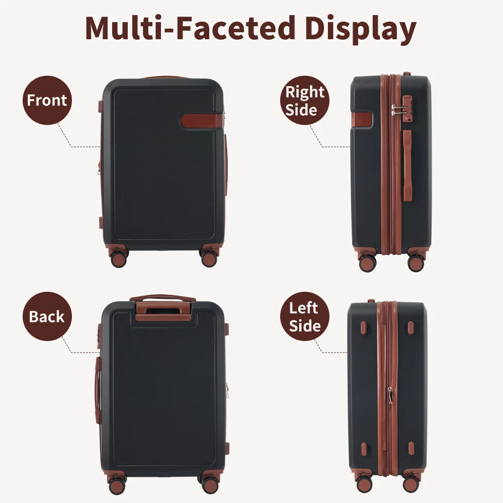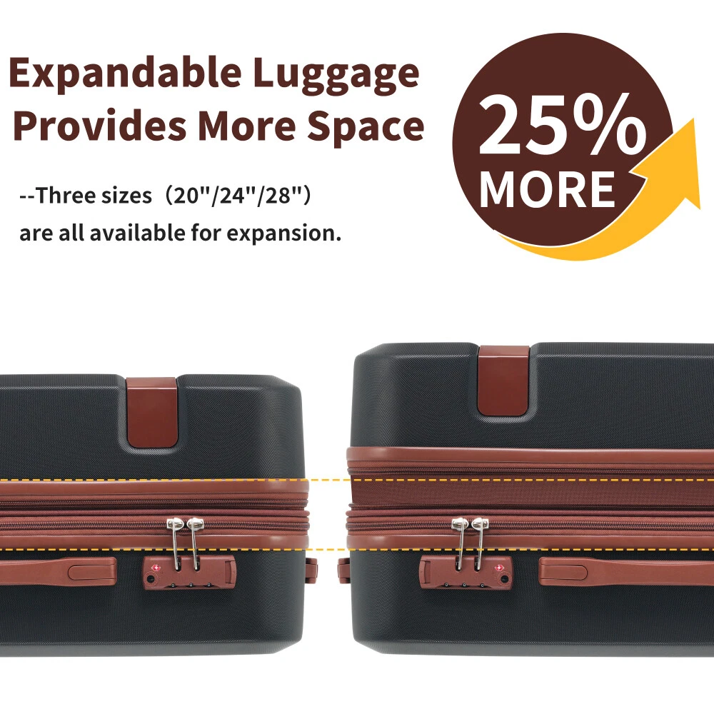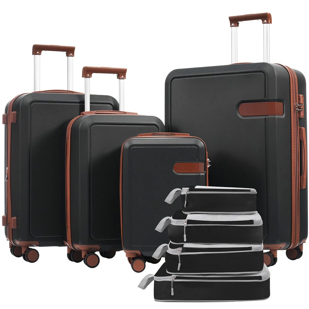 4 Piece Luggage Set with Compression Packing Cubes for Suitcase Expanable Spinner Wheels Lightweight Suitcase with TSA Lock 16 IN+20IN+24IN+28IN Product Features [Suitable Luggage Set] Luggage set includes 4 suitcases-16"+20"+24"+28"and 4 compression packing cubes for suitcase, enjoy a matching small and large luggage to travel with together or separately depending on how much you decide to bring with you on your trip. [Feather Weight Construction] Keep your load as lightweight as possible while traveling with our luggage pieces manufactured with feather light ABS material formulated for high durability while not weighing the luggage down. [Safeguard 3-Digit Lock] Rest easy while traveling and know that your belongings are under safe keeping with the built in customizable 3-digit lock that keeps out potential thieves when you aren't with your luggage. [360° Spinner Wheels] Each luggage is fitted with quad smooth-glide base 360 degree swivel spinner wheels for easy transportation through terminals, on concrete, cobblestone and more. [Spacious & Organized Packing] The 24"& 28" suitcases feature a built-in expandable feature, allowing you to increase packing space by 25%. The luggage interior also features elastic cross over straps and mesh pockets for easy organization. [Lightweight Travel Accessories ]: Super light fabric of compression packing cubes ensure packing your clothes neatly in luggage without adding extra weight. Great for when you want to minimize weight as much as possible and save space within your suitcase. [Luggage Size-included accessories]: 16 IN luggage dimensions:11"x6.7"x17.7"; 20 IN luggage dimensions: 13.2"x8.7"x20.4";24 IN luggage dimensions:15.6"x10.4"x24.4";28 IN luggage dimensions:17.7"x11.6"x28.3". Description We have perfected our hard case luggage collections, with high quality material molded body coveted. Instructions for Reset the combination lock 1.The lock is Pre set to 0-0-0; 2. Push the button on the broadside, while in this position, set each number to your preference; 3. Release the button and your combination is now set; 4.Take care when setting the numbers to not release the button while setting it.