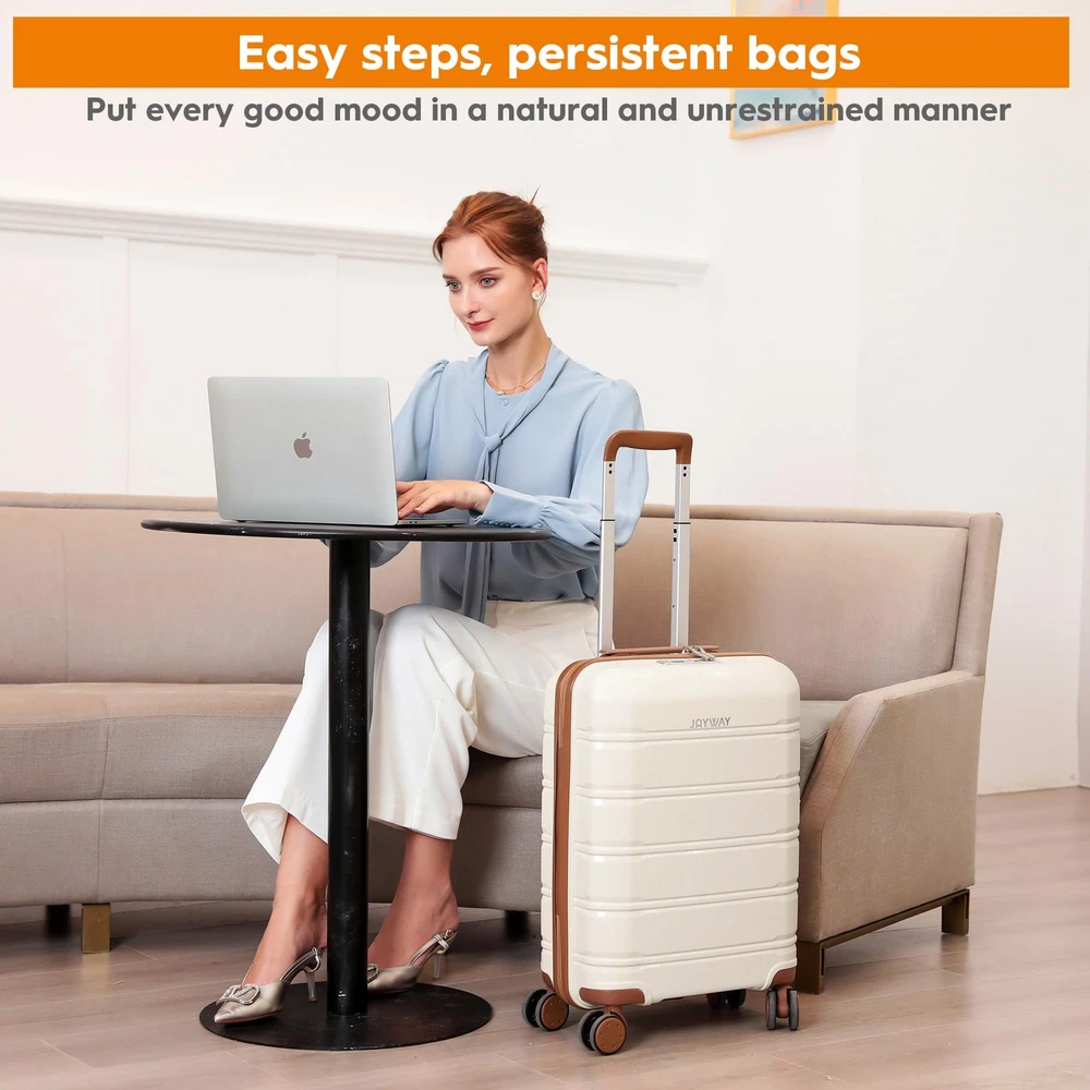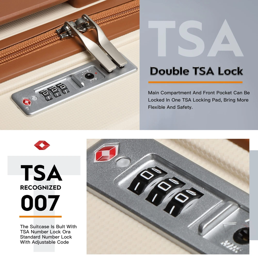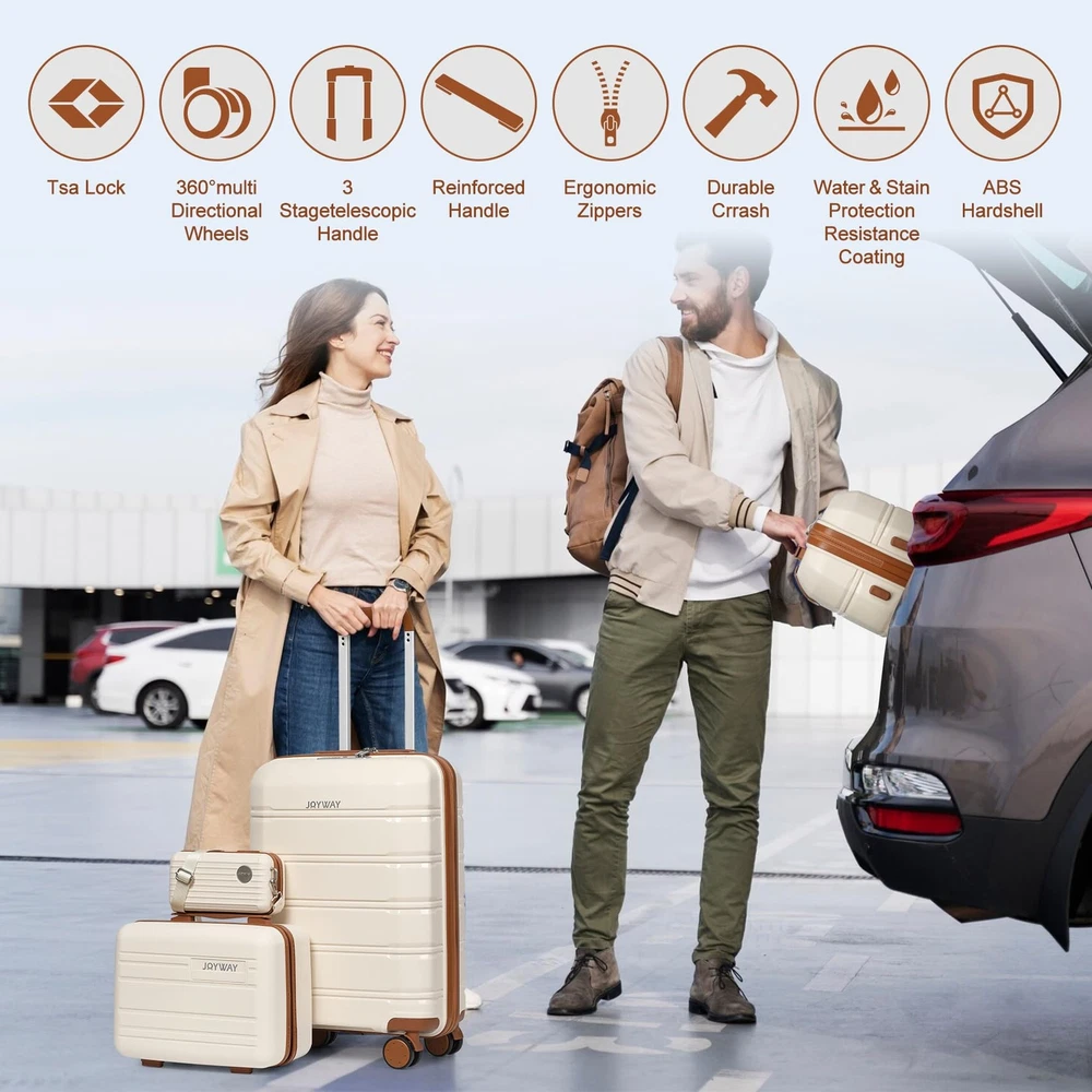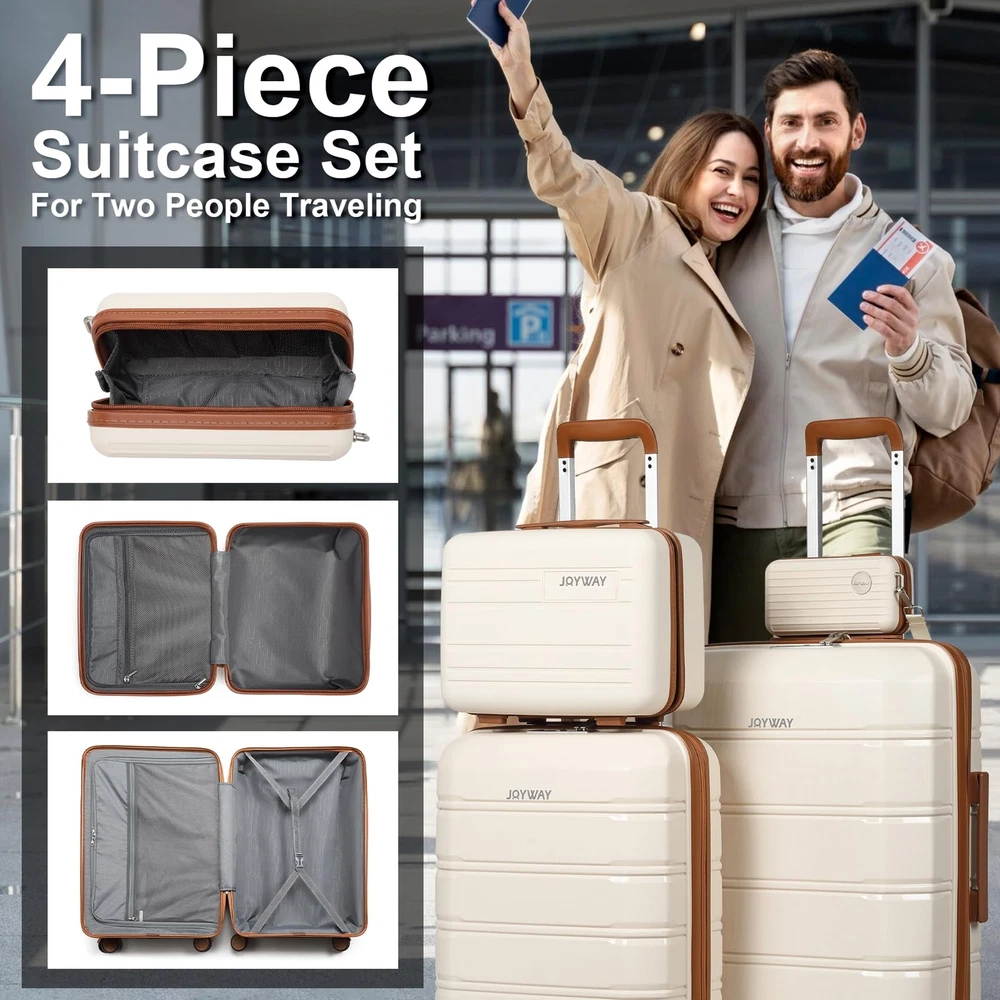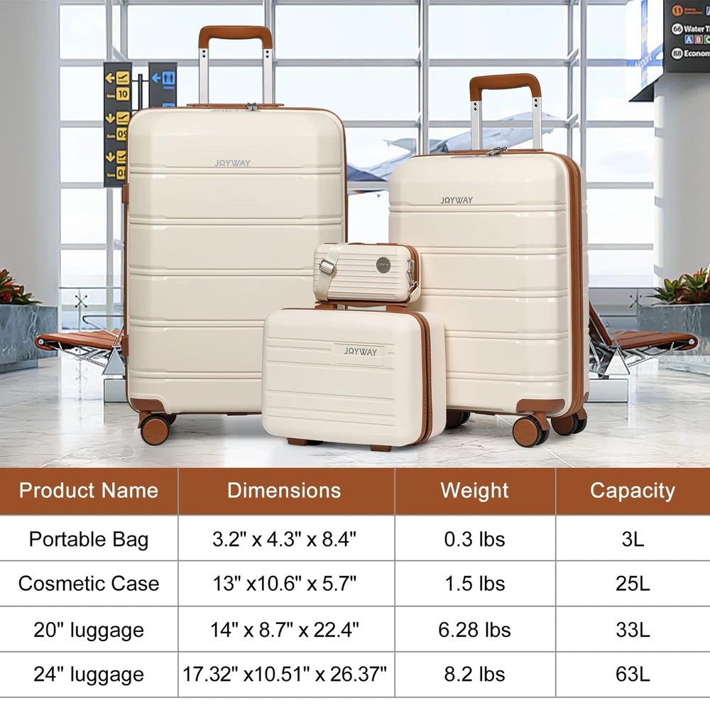 Description Durable & Lightweight Made of durable, lightweight polypropylene, the Freeform collection has been rigorously tested to meet stringent standards and is designed to last. Expandable Storage With a zipper to expand and compact, it provides ample packing capacity while adhering to carry-on size restrictions. 360 Spinner Wheels Equipped with multi-directional oversized dual spinner wheels, Freeform ensures effortless mobility in all directions, even when full. Adjustable Handle The push-button ergonomic handle adjusts to different lengths, providing comfortable maneuvering for travelers of any size. Complete Packing Set: This luggage set includes a 20-inch carry-on suitcase (22" x 15.35" x 9", 5.51 lbs), a 24-inch large suitcase (26" x 18" x 10.7", 7.28 lbs), a 14-inch cosmetic travel case (12" x 13.2" x 6.6", 2.09 lbs), and a 10-inch carry-on handbag. This comprehensive luggage carry-on and large suitcases with wheels make your travel hassle-free and organized. Premium Quality Construction: Our hard shell luggage sets are crafted from 100% Polypropylene with a scratch-resistant textured finish. This ultra-light yet sturdy material is significantly lighter than ABS and PC plastic, ensuring that your hardside carry-on luggage maintains its durability and withstands the rigors of travel. Effortless Mobility with Spinner Wheels: The 360°double spinner wheels on our suitcases with wheels allow for smooth and quiet navigation in any direction. Each suitcase features four molded side legs for stable standing and easy-to-grip handles, enhancing comfort during travel. Our luggage carry-on set has successfully passed drop and load-bearing tests for reliable performance. Enhanced Security Features: Each suitcase is equipped with TSA locks, providing peace of mind during travel. The YKK zippers, made from 8-strand threads, ensure durability and functionality, making these suitcases with wheels ideal for international journeys while saving you time during inspections. Ergonomic Design for Comfort: Our carry-on luggage with wheels features an adjustable and sturdy aluminum 3-step telescoping handle, ensuring effortless movement. The smooth retractable handle and reinforced brackets reduce the risk of hard shell cracking, while soft rubber grips protect your fingers when lifting your lightweight luggage bags for travel.