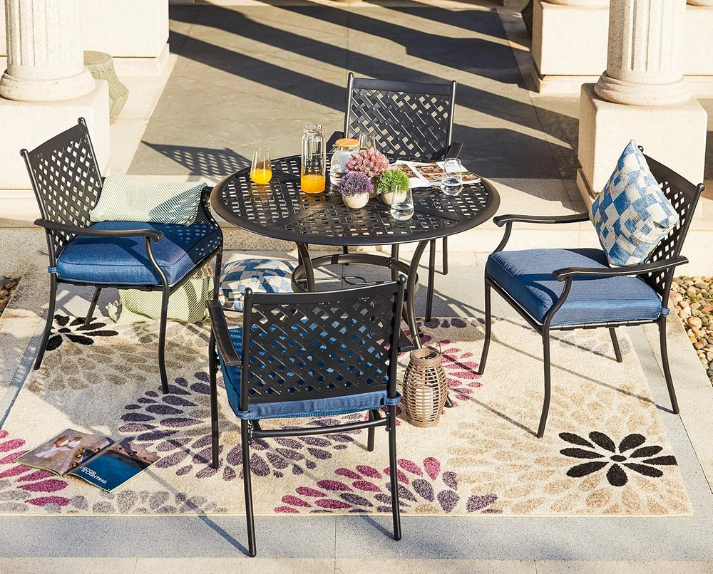 Store New Arrivals Add to Favorite View Feedback Contact 4 Piece Metal Outdoor Wrought Iron Patio Furniture,Dinning Chairs Set with Arms and Seat Cushions (4 PC, Blue) Description Age Range Description Adult Style Modern Cushion Style Boxed Edge Pattern Solid Material Type Iron, Metal Is Electric No Seat Height 16.1 Inches Frame Material Alloy Steel Seat Material Type Plastic Finish Types Polished Arm Height 24 Inches Item Shape Diamond Unit Count 4.0 Count Room Type Dining Room, Patio Garden Brand Name Top Space Brand Top Space Is Customizable? No Tilting No Material Iron, Metal Item Weight 52.2 Pounds Maximum Weight Recommendation 330 Pounds Furniture Base Movement Glide Frame Material Alloy Steel Arm Style With arms Leg Style Straight Leg Manufacturer TOP Space Back Style Ladder Back Item Weight 52.2 Pounds Surface Recommendation Hard Floor Special Features Arm Rest, Cushion Availability Seat Material Plastic Color Blue Item Dimensions D x W x H 23.6"D x 22.4"W x 34.6"H Furniture Finish Plastic Indoor Outdoor Usage Outdoor Is Foldable No Recommended Uses For Product Dining Included Components User Manual, Installation Hardware Product Dimensions 23.6"D x 22.4"W x 34.6"H Seat Depth 18.5 inches Size Large STACKABLE FOR OUTDOOR: With stackable design, these patio dining chairs a nice addition to dining room since they're easy to store or set aside when they're not in use. Plus, plastic floor glides down below help prevent them from scratching your floors or deck. The standard height can perfectly fit other table and dining set, chair can push in table. This modern patio dining chair will bring style to your backyard, porch, or patio; a furniture piece perfect for your dining ensemble. WIDE AND DEEP SEAT: The slightly slanted seat back will fit your body line perfectly and ensure a relaxing seat for hours. Firm and wide seat, 3.1" thick soft seat and curved arm make the patio dining chair are more comfortable than the normal metal patio chairs. Seat cushion is connected to the chair with two hook-and-loop fasteners. Removable is easy for cleaning. All of them are of super quality for no slide,no sunken after a long time use. You can sit, stretch your legs. STURDY AND DURABLE:The 4 Piece stackable patio dining chair is not only a beautiful addition, but also is a durable option that to withstand the weather. This patio dining chair is built with an galvanized steel frame, covered with smooth black polished paint. Designed to hold up to everyday use without chipping, scratching, or peeling. All pieces of this stacking patio chairs set are lightweight, allowing for effortless maneuvering when a layout change is in the works. EASY TO ASSEMBLE: The holes line up and you can use the hand tools or your cordless drill to set them up. Pls do not overtighten the patio dining chair when last step is finished. With our clearly manual, it's easy to assemble it, just need some times. 4 Pieces patio dining chair : 22. 4"(L)*23.6"(W)*34.6"(H). Max capacity: 330LBs OUTDOOR DINING CHAIRS: This outdoor chairs set included 4 outdoor dining chairs, all necessary hardware and instructions included for efficient and eazy assembly. Decorations are not included.Pls check description for more details. The four (4)-piece Stacking Patio Dining Chair Set, featuring a sturdy, black powder-coated steel frame, makes a perfect addition to seating groups both inside and out. It can be adapted to any interior and imbue your home with vintage flair and urban sophistication. With stackable design, these patio dining chairs are an ideal option for entertaining outside since they're easy to store or set aside when they're not in use. Plus, plastic floor glides down below help prevent them from scratching your floors or deck. ABOUT US We offer the best prices around on high quality products. Our E-store includes media such as books, movies, music and games while offering electronics, toys, sporting apparel, clothing, tools, general home, garden items and more. SHIPPING We are always working hard to ensure your package arrives as soon as possible. Please understand that some factors like weather, high postal traffic, and the performance of shipping companies are outside of our control. For shipping outside of the continental USA, we only use eBay's Global Shipping Program.The item is shipped to KY and then sent to the rest of the world. International customers are responsible for all duties and taxes. Continue to check out in order to calculate costs for shipping the item to your country. Messages regarding eBay's Global Shipping Program MUST be directed at eBay EXCLUSIVELY. RETURNS We offer a 30-Day Return Policy on items which you are not completely satisfied with. You have the option for a full-refund or an exchange of the item. No returns are available on items shipped outside of the USA. PAYMENT We accept PayPal. CONTACT US This page content is yet to come Please ad us to your favorite seller and visit again later Thank You CUSTOMER SATISFACTION We try our very best to make sure every customer is completely satisfied. If there's a problem, message us! We're happy to help. WE ACCEPT Copyright © 2021 AutoDS. | All Rights Reserved
