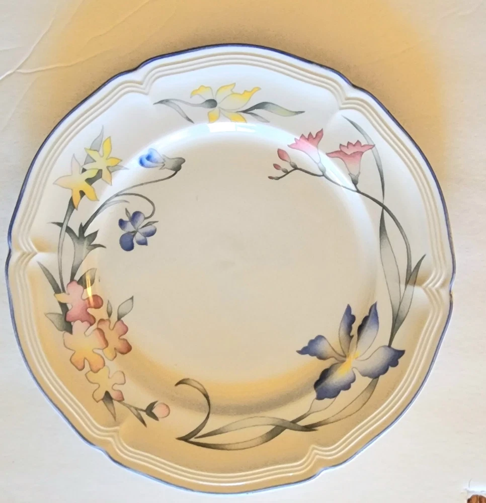 Very pretty set of 4 plates. No chips or cracks but please expect minor signs of use and storage such as light scratches or scuffs. I've added a couple different shipping options, please choose what works best for you.