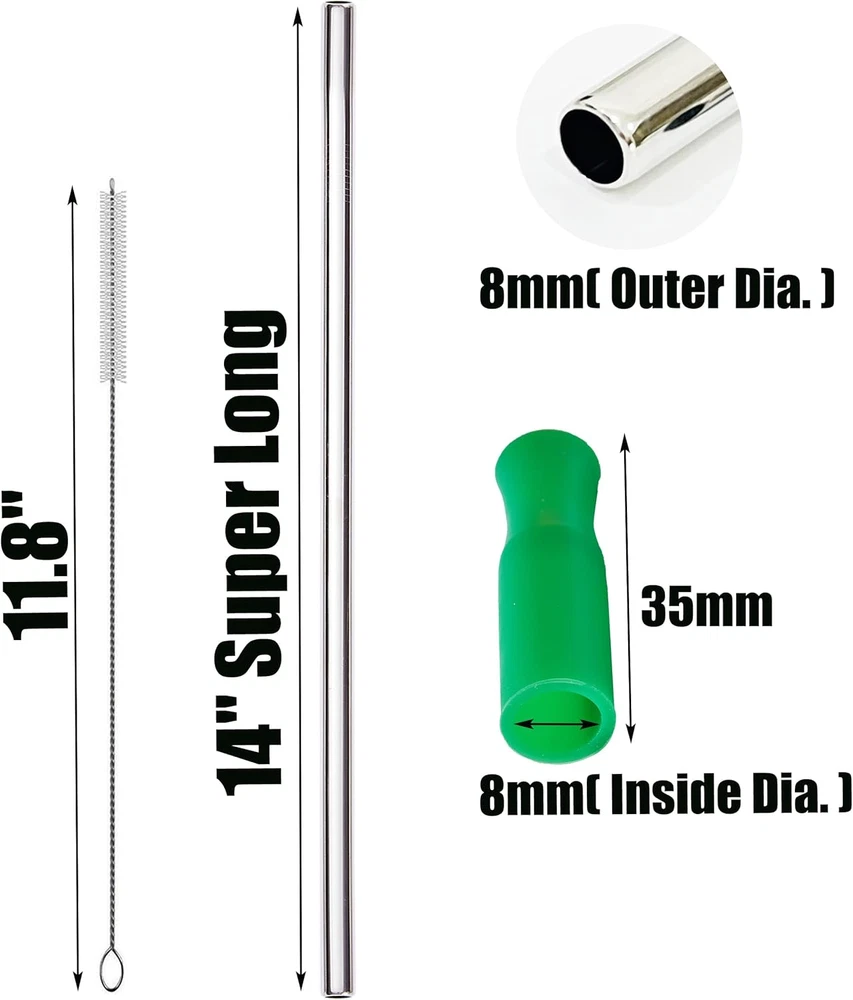 Store New Arrivals Add to Favorite View Feedback Contact 4 Pieces 14" Extra Long 0.32" Big Wide Reusable Stainless Steel Metal Straws with Cleaning Brush & Silicone Tip for 128 100 75 64 40 Oz Large Water Bottle, Tall Tumbler, Wine Bottle Description Item model number 14 Inch Straight Metal Straw Unit Count 1 Count Number of Items 1 Color Silver Material Stainless Steel Country of Origin China Item Weight 4.5 ounces Special Feature Durable,Extra Wide,Premium,Reusable Product Dimensions 14 x 0.32 x 14 inches Size 14" Premium Material: Made of food grade 18/8 Stainless Steel, very strong and reusable. Silicone tip is made of food grade silicone, non-toxic and odorless, they are good to pretect our teeth from the metal touch Huge Size: 14" super long, 0.32"/8mm wide, please CHECK if our straws can be put in your cups or tumblers before order, it's really long What you get: 4 pieces extra long metal straws + 4 pieces silicone tips + 1 piece cleaning brush Easy To Clean & Dishwasher Safe: The long cleaning brush can help you clean the straw quickly, and never worry about hurting your straws Wide Application: These reusable extra long stainless steel straws are can fit to 40 64 75 100 128 oz tall tumbler or large water jugs, suitable for daily use, such as family party, restaurants, bars, BBQ and birthday party Product Description 14 Inch/355mm Straight Stainless Steel Drinking Straws - REALLY LONG Our EXTRA LONG stainless steel straws are made of food grade 18/8 stainless steel, reusable, BPA-free, no yucky metallic taste, replace disposable plastic straws (13" or 15") and paper straws. Suitable for many tall tumbler It's 0.32"/8mm EXTRA WIDE, 14" SUPER LONG , so please CHECK your tumbler's dimensions before purchasing our extra long straws. Packing List: 4 pcs 14 inch straight stainless steel straws + 4 pcs 8mm silicone tips + 1 pcs cleaning brush.. For 1 gallon water jug For tall wine bottle For 64 oz tumbler ABOUT US We offer the best prices around on high quality products. Our E-store includes media such as books, movies, music and games while offering electronics, toys, sporting apparel, clothing, tools, general home, garden items and more. SHIPPING We are always working hard to ensure your package arrives as soon as possible. Please understand that some factors like weather, high postal traffic, and the performance of shipping companies are outside of our control. We offer free shipping to the lower 48 states and ship within 2 business days of payment, usually sooner. We do not accept P.O. Boxes. Please provide a physical address. For shipping outside of the continental USA, we only use eBay's Global Shipping Program.The item is shipped to KY and then sent to the rest of the world. International customers are responsible for all duties and taxes. Continue to check out in order to calculate costs for shipping the item to your country. Messages regarding eBay's Global Shipping Program MUST be directed at eBay EXCLUSIVELY. RETURNS We offer a 30-Day Return Policy on items which you are not completely satisfied with. You have the option for a full-refund or an exchange of the item. No returns are available on items shipped outside of the USA. PAYMENT We accept PayPal. CONTACT US This page content is yet to come Please ad us to your favorite seller and visit again later Thank You CUSTOMER SATISFACTION We try our very best to make sure every customer is completely satisfied. If there's a problem, message us! We're happy to help. WE ACCEPT Copyright © 2021 AutoDS. | All Rights Reserved