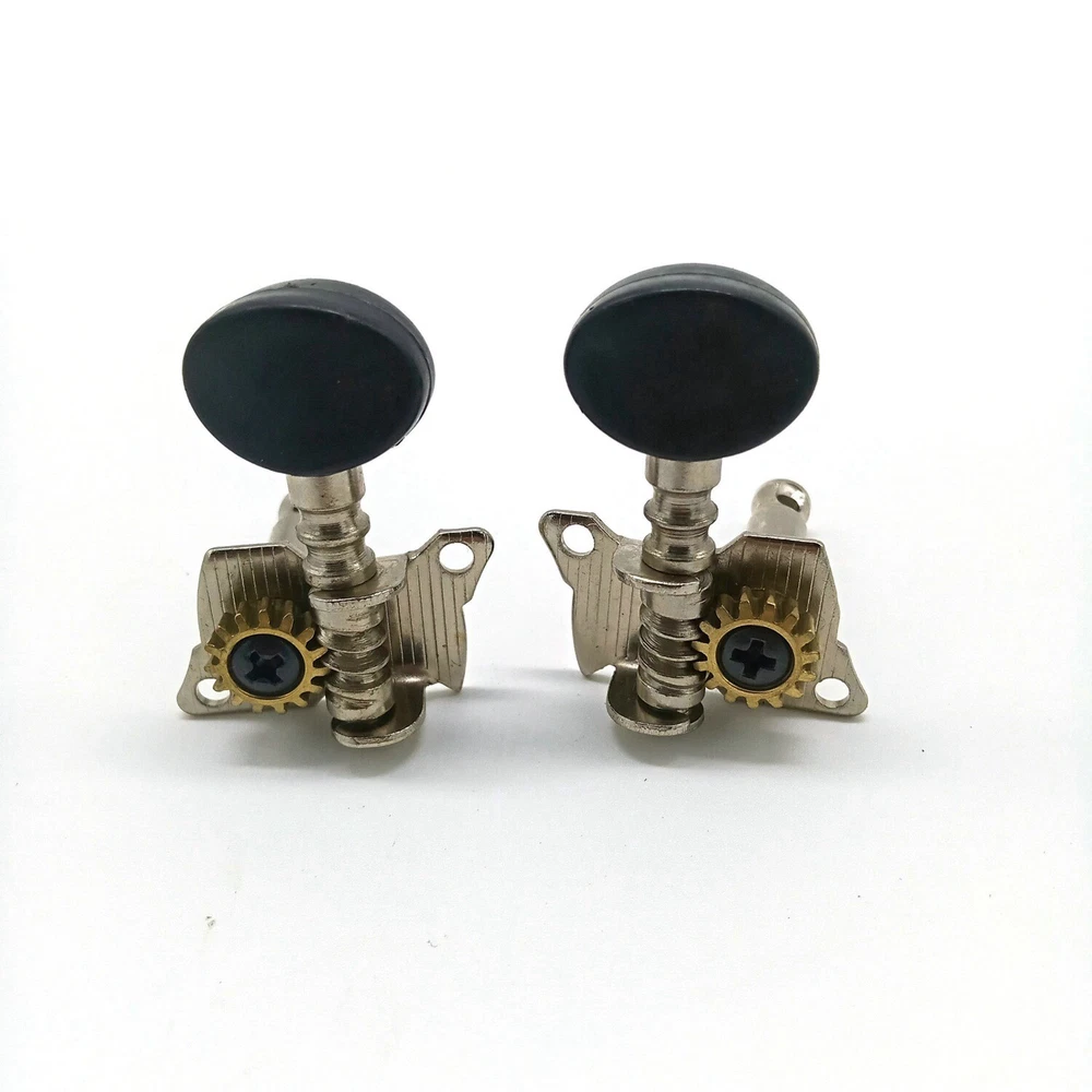 4 Pieces Metal Opened Ukulele Uke Tuning Pegs Tuners Round Black B5N98228 Set of 4 ukulele open adjusting round pegs cap machine heads New and high quality, easy to install Ukulele 4 strings hawaii guitar spare parts Adjust smoothly, without slop or slack size:30x40x30.5MM Material:Metal + plastic colour:Black + Silver Package Contents: 4 x Tuner (2R 2L)
