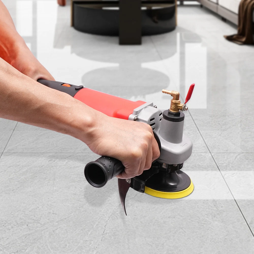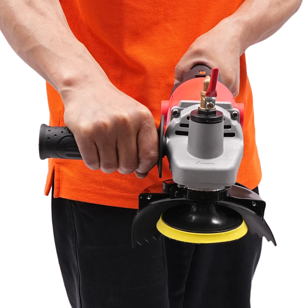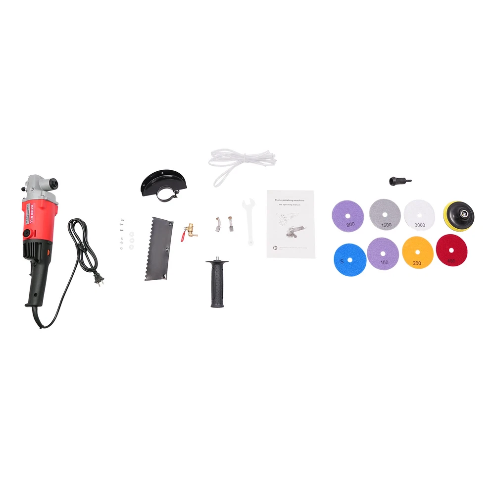 Description The powerful grinding force and fine processing effect make this wet polishing machine an important tool for your polishing work. It adopts a powerful copper wire motor and efficient water spray cooling system, which can realize an excellent grinding effect for you while effectively reducing dust, lowering the working temperature, and prolonging the service life of the machine and grinding discs. Its combination of flexible operation and stable performance makes it easy to cope with both home decoration and large-scale projects, making your stone processing more efficient and environmentally friendly. Key Features Long Service Life: The high-quality alloy steel, nylon, aluminum alloy, copper and diamond give the machine and the discs high hardness, and resistance to wear, corrosion, and rust to achieve a long service life. Adjustable Speed: With the easy rolling switch you can easily switch between six speeds (3500-8100rpm) for different process purposes such as rough grinding, fine grinding, and working with different stones. Carefully Designed: The main handle quickly provides adequate pressure on the surface for the ideal polishing result and the extra side handle can supply more power and make the process more stable. Excellent Grinding Performance: Diamond abrasive discs and 1400W high power motor make this product easy to process, polish, and chamfer stone, ceramics, glass, floor tiles, and other materials, and allow the stone to reach a glossiness of up to 90° after rough grinding, fine grinding, fine grinding, and polishing, providing you with excellent processing results. Dust Reduction Design: The product is equipped with a water cooling system, which can effectively reduce the splashing and generation of dust to protect your health and at the same time lower the working temperature of the grinding discs and prolong their service life. Wide Compatibility: The 7 grinding discs with different meshes (50/100/200/400/800/1000/3000 meshes) allow the product to be used in different processes and to handle different materials, making it suitable for a wider range of applications. Stable Operation: The high-quality alloy steel gears with high wear resistance and low noise, together with the premium sealed bearings ensure the excellent performance of the product, so you can use it with confidence. Easy to Carry: The comfortable handles and the lightweight (grow weight: 8.62lbs) allow you to easily carry the product and hold it for processing in various angles for different working purposes. Quick Heat Dissipation: Multiple air vents can accelerate the heat dissipation speed and prevent the motor from getting burned due to the long time work. Thoughtful Design: The product adopts a double-insulated motor, which effectively reduces electric shock accidents. The all-copper valve is durable and easy to operate, you can easily turn on and off the water flow to avoid wasting water. Customer Service: We aim to provide quality products and services. If you have any problems, please feel free to contact us. We will reply and solve the problem for you as soon as possible. Details External Carbon Brush: It has good heat dissipation and is easy to maintain the vibration performance as well as the stability of the motor, and it is also easier to replace. Sturdy Screw: The M14 high-temperature quenched screw is strong and durable, providing a solid structure for the product. Rounded Corners: They are comfortable to the touch and can effectively protect your hands from getting scratched. Application The product can be used for shaped processing stones, ceramics, glass, floor tiles, and other materials, suitable for stone polishing, line chamfering, curved panels, and shaped stone processing, can also be used for processing, restoration, and renovation of marble, coagulation, cement floor, terrazzo, microcrystalline glass, artificial stone, floor tiles, glazed tiles, glass tiles. How to Install 1. Attach the water baffle. 2. Install the self-adhesive disk. 3. Install the inlet fitting. 4. Attach the inlet hose. 5. Attach the auxiliary handle. 6. Attach the grinding disc. Specifications Color: Red Material: Nylon, Aluminum Alloy, Diamond, Copper, Alloy Steel Process: High-temperature Quenching Motor Type: Pure Copper Motor Assembly Required: Yes Power: 1400W Voltage: 110V Plug Type: US Standard Power Source: Corded Electric Speed: 3500-8100rpm Maximum No-load Speed: 8100rpm Number of Speed Gears: 6 Suitable Disc Diameter: 10cm/3.94in Discs Specification: 50/100/200/400/800/1000/3000 Meshes Water Pipe Length: 2m/6.56ft Power Cord Length: 2m/6.56ft Product Size: 40*19*13cm/15.75*7.48*5.12in Package Size: 44.4*17*13.5cm/17.48*6.69*5.31in Gross Weight: 3.91kg/8.62lbs Package Included 1* Wet Polishing Machine 2* Carbon Brushes 7* Grinding Discs 1* English Manual 1* Water Pipe 1* Side Handle All Accessories for Use Notes Please check the size carefully before ordering. Please beware of electrical safety hazards, use these tools according to the product instructions, take the necessary personal protection measures, and keep them out of the reach of children. Please note that the machine will heat up when working, which is a normal phenomenon and not a quality problem. Please note that the product is suitable for marble, granite, terrazzo, and other floors for water grinding and polishing. For the side of the wall and other operations that require the machine to be inverted, you need to turn off the water injection function to start the dry grinding state operation, which can avoid electric leakage caused by water entering the motor due to inverted use Please note that the amount of water injection should not be too much, to prevent water from entering the machine to produce leakage. Please keep the machine body dry and clean the internal stains from time to time to improve the service life. Please allow the slight color difference caused by the shooting light and 1-3cm error due to manual measurem