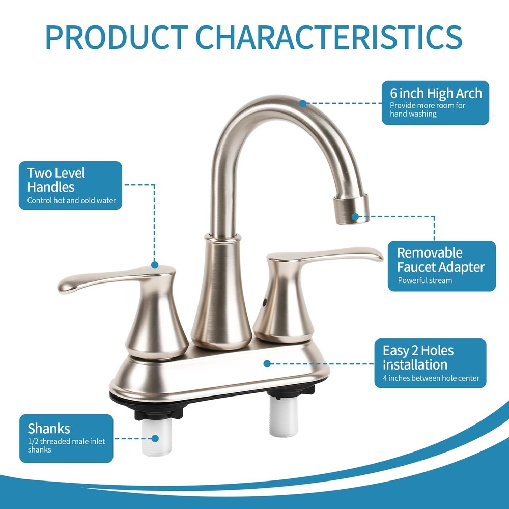 4 inch RV Bathroom Faucet, RV Bathroom Sink Faucet Replacement for Campers, RV, Motorhome, Travel Trailer, Boat (Brushed Nickel) **Cannot be Shipped to California** Design for RV faucet replacement. compat with most US standard rv sink. Easy 2-Holes Installation. No plumber need Brushed Nickel Finish provide a stylish looking and math versatile style. polishing finish can resist strong corrosion,scratch-resistant Premium ABS material made. the material promised the quality for cUPC request. And provide lightweight and durable rv faucet Easy Operation, Two-Handle lever for quarter-turn stops. 360 degree swivels can reach the whole sink Quality test passed life time Drip-free cartridges. Flow rate is 2.2 GPM at 60 PSI, and 8.3 L/MIN at 414 KPA. RV FAUCET, RV BATHROOM FAUCET,RV bathroom faucet replacment Shipping We offer FREE shipping on all orders! We ship within Three business days of payment, usually sooner. We use a selection of shipping services such as UPS, FedEx, USPS etc. We only ship to the lower 48 states, no APO/FPO addresses or PO Boxes allowed. Local pickups and combined shipping options are not provided at this time. Return You can return a product for up to 30 days from the date you purchased it. Any product you return must be in the same condition you received it and in the original packaging. Please keep the receipt. Payment We accept payment by any of the following methods: PayPal Please pay as soon as possible after winning an auction, as that will allow us to post your item to you sooner! Feedback Customer satisfaction is very important to us. If you have any problem with your order, please contact us and we will do our best to make you satisfied. Contact Us If you have any queries, please contact us via ebay. We usually respond within 24 hours on weekdays. Please visit our eBay store to check out other items for sale! Thank you for shopping at our store.