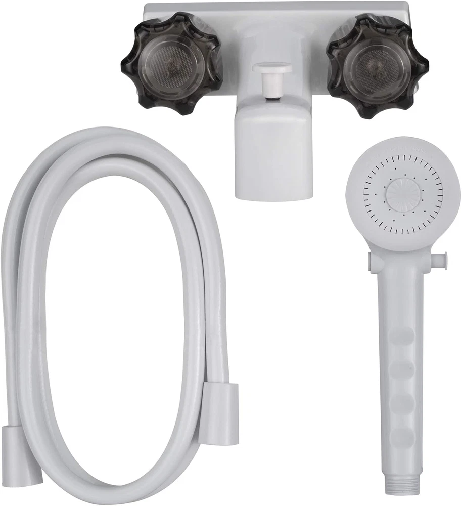 4" RV Tub and Shower Diverter Faucet in White or Smoke with Handheld Shower Head and Hose
