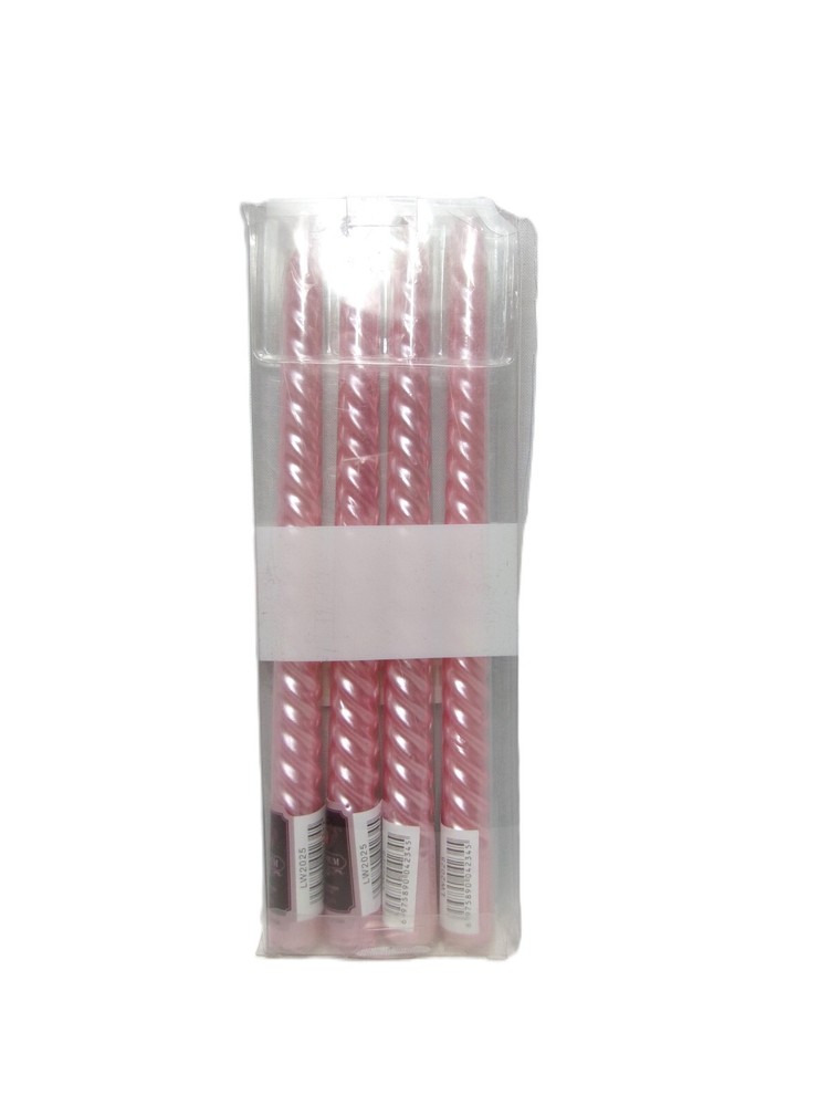 DETAILS · Set of four unique & rare pink satin swirl spiral twist taper candlestick candles. Retro vintage-style (however these are new) 8-hour candles. Unscented, dripless, and smokeless. Unused and new in package. Very good condition – I found no flaws. Candles are approx. 9 ¾” tall. - VISIT MY EBAY STORE! - I am selling many other vintage items and offer combined shipping; Message me for a quote. _____________________________ If there is any issue you are not happy with, please message me directly. I aim for 100% satisfaction! _________________________________________