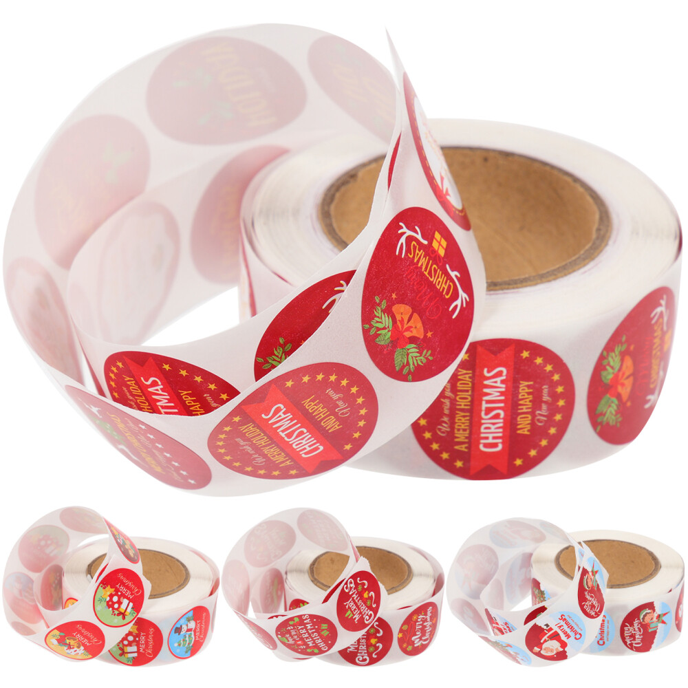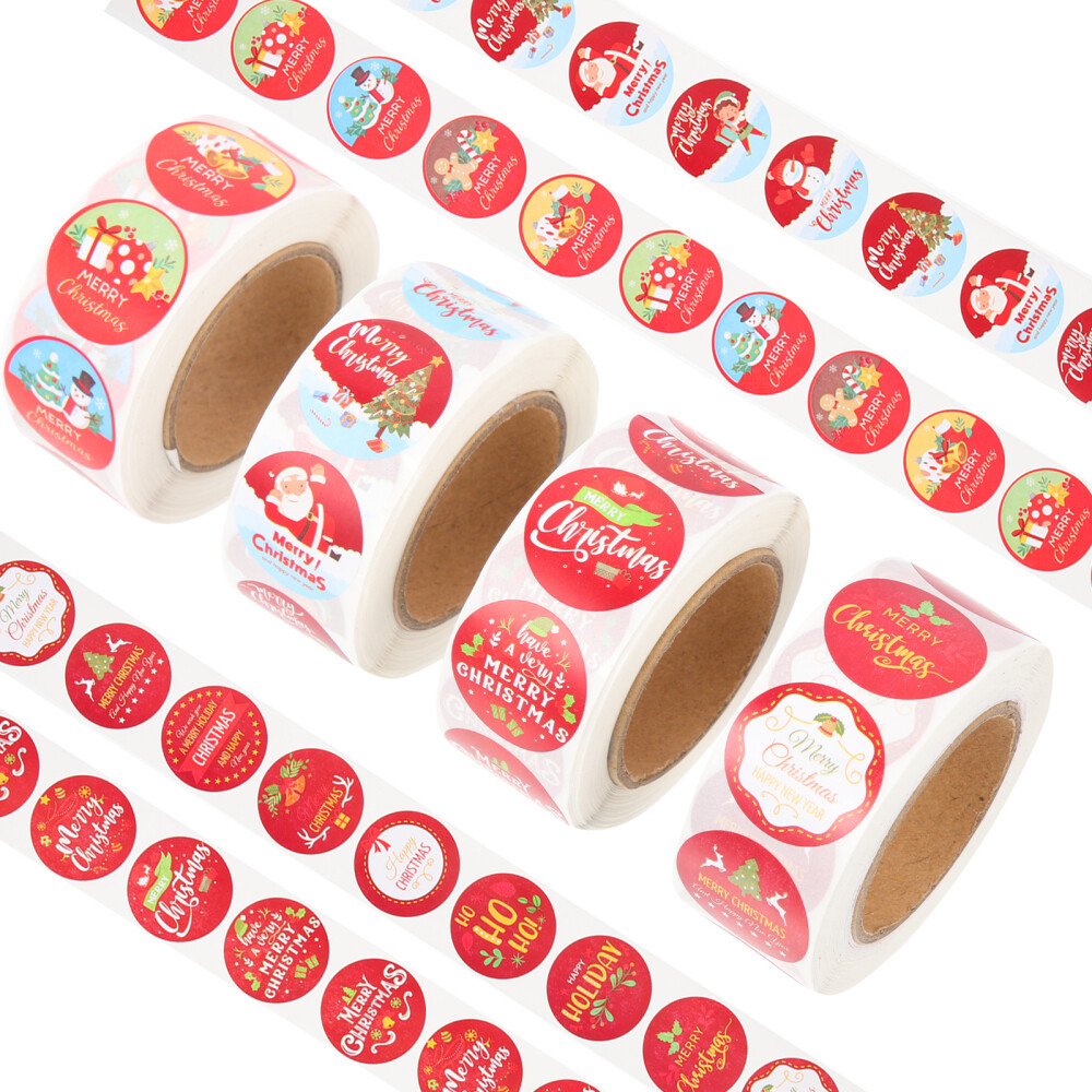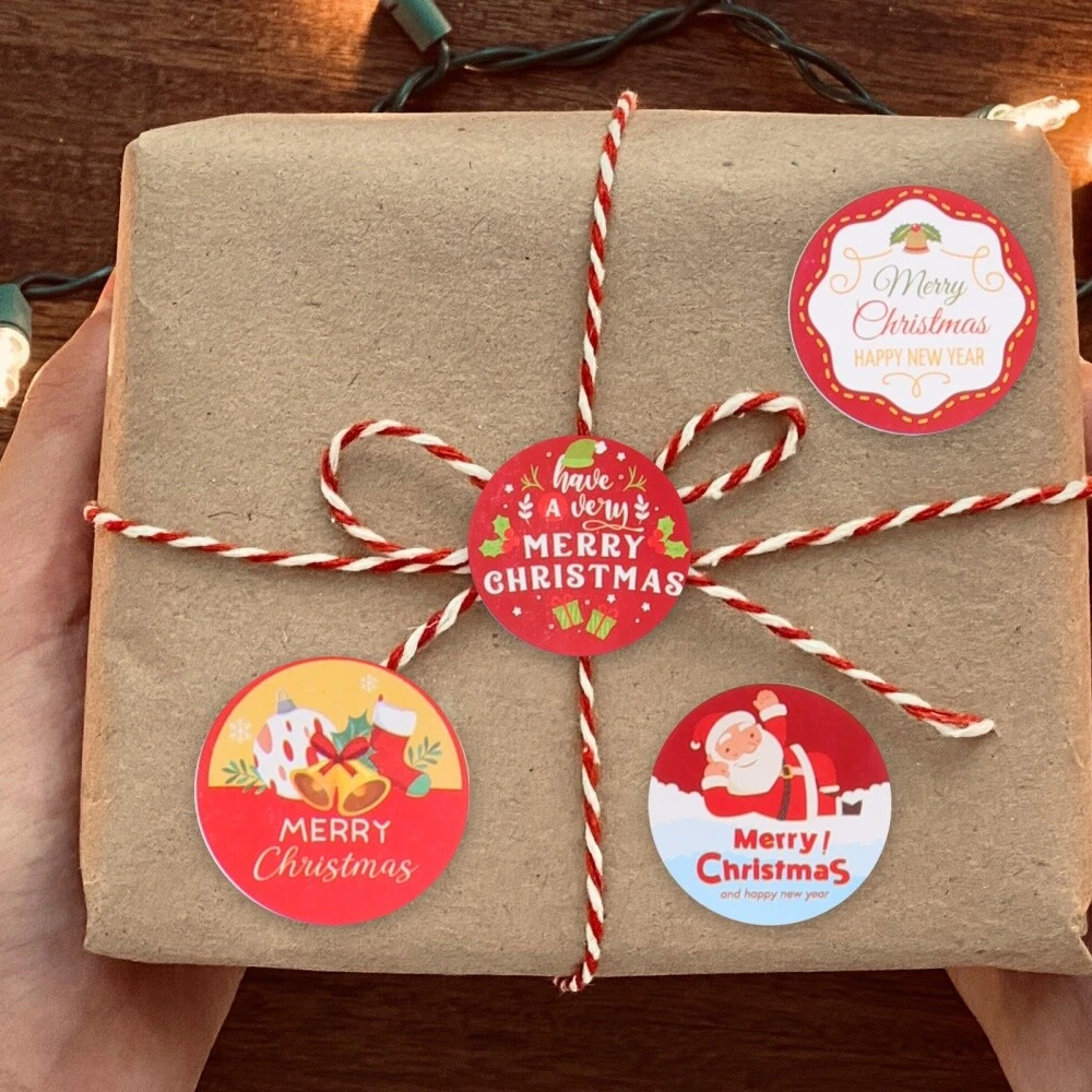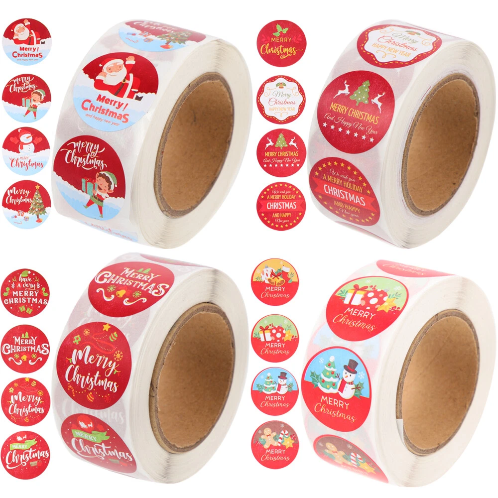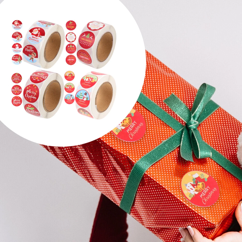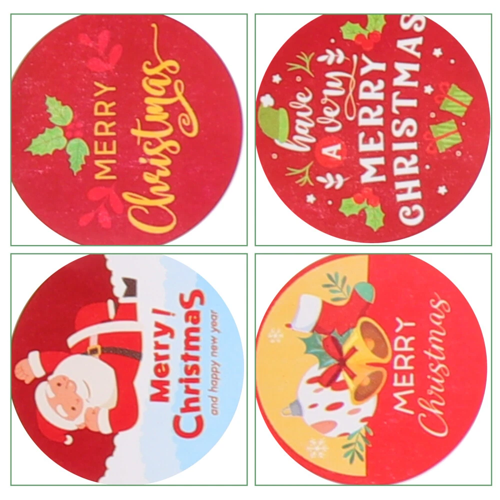 4 Round Christmas Stickers for Wrapping Gifts and Greeting Cards