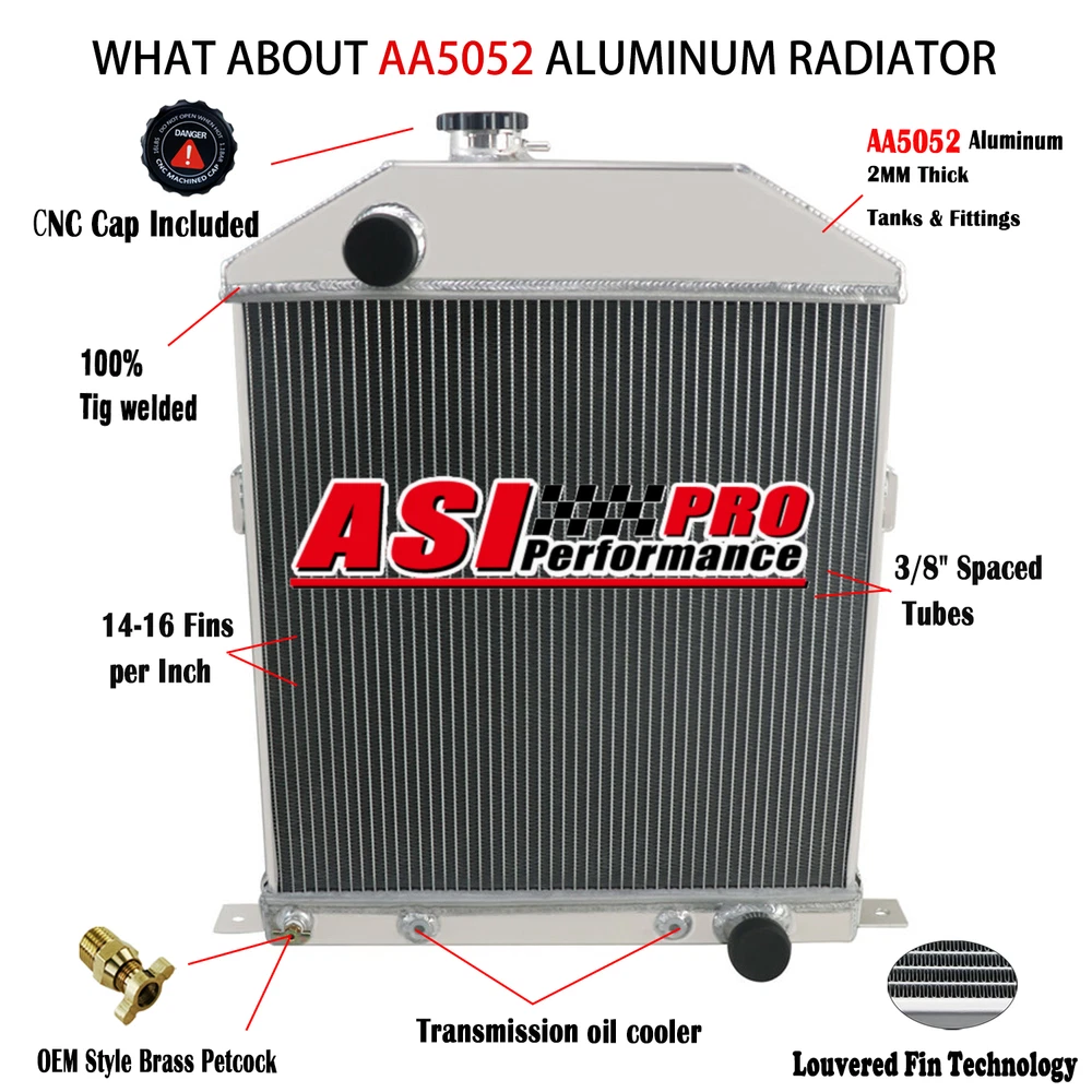 DELIVERY PAYMENT RETURNS WARRANTY FEEDBACK Store Home Car&Truck Radiator Oil Tank/Can Arms/Carrier Motorcycle Radiator Intercooler&Kit Exhaust Head Pipe Radiator Intercooler Hose Pipe Cooling Thermo Fans&relay Radiator Cap&Filler Neck&Plug Other Products DESCRIPTION Radiator Size: Condition:New Material: AA5052Aluminum High Performance Racing Spec. 4 -Row of tubes Core Racing Design Core Size: 19.5" x 19.6" x 2.5" Overall Size: 23.8" x 26.6" Inlet Size: 1 7/9in. Outlet Size: 1 1/4in. OEM Style Brass Petcock Drain. CNC Machined Billet and High Pressure Radiator Cap 1.3 Bar Upgrade Performance 1. Made from Aircraft AA5052 grade aluminum for prolonged lifespanand with raw aluminum finish 2. Brazed core technology to guarantee optimum performance and dependability 3. All AA5052 Aluminum 2mm thick tanks and fittings,Ensure it's hard and durable 4. Billet Aluminum CNC machined fill neck rugged and durable 5.E rgonomic design CNC machined cap with Engraved craftsmanship, anodized treatment. 6. OEM style brass petcock drain much better than other plastic one on eBay 7. Carefully crafted to exceptional OE standards for precise fit Vehicle Fitment: For Ford/Mercury Passenger Cars 1942-1948 (Chevrolet Conversion) Ford 1942 - 1947 1 Ton Pickup Ford 1942 - 1947 1/2 Ton Pickup Ford 1942 - 1947 3/4 Ton Pickup Ford 1946 - 1948 Duluxe Ford 1948 F1 Ford 1948 F2 Ford 1948 F3 Ford 1948 F4 Ford 1942 Model 21 A Deluxe Ford 1942 - 1947 Sedan Delivery Ford 1942 - 1947 Super Deluxe Mercury 1946 - 1948 Mercury Base Mercury 1942 Series 29A Base DESCRIPTION: Our Radiator is made of AA5052 aircraft aluminum. Its different from other sellers T-3303 Series. In fact, AA5052 series Aluminum is much better than T-3303 series. More than 90% of aftermarket manufacturers use the T-3303 series Aluminum , because it is cheaper and easier to get the material. However, T-3303 aluminum has many disadvantages, such as poor polishing effect, softness, easiness to scratch and corrode, poor heat dissipation effect. If the T-3303 aluminum radiator is operated in high pressure and high temperature for a long time, the leaking problem would occur very soon. AA5052 Aluminum is an Al-Mg alloy with good corrosion resistance, excellent reliability and cold workability and strength. The main alloying element of AA5052 is magnesium, which has good forming and processing properties. It is widely used in the manufacture of aircraft fuel tanks, oil pipes, and sheet metal parts of transportation vehicles and ships, hardware products, and electrical-appliance casings. This AA5052 Aluminum Radiator is designed to provide maximum cooling efficiency to prevent premature engine failure. Its light-weight, and high-heat transferring aluminum features a tube and fin design that, dramatically increases surface area that enables the heat to dissipate more efficiently. This AA5052 Aluminum Radiator is at least 30%-45% more efficient than stock ones. Most importantly, it has a much higher capacity for coolant than stock ones, which means that your cooling system will be more efficient and will be more resistant to temperature surges in racing applications. RETURN & EXCHANGE DELIVERY PAYMENT RETURNS WARRANTY FEEDBACK DELIVERY Paypal ONLY --the easiest and most secure way to pay on line PAYMENT All orders will be sent within one business day after payment received. Note: Please contact for quote if international postage NOT display. (shipping and handling charge is only for the lower 48 states in USA, other states'[Alaska, Hawaii, and Puerto Rico etc.]shipping cost , please contact us for quote.) RETURNS A new return is considered a brand new item that you ended up not needing or perhaps you purchased incorrectly for your specific vehicle. Please keep in mind that spending time before purchasing the part to confirm it is indeed exactly what you need can help prevent you from ordering the wrong part. Please remember to email us which warehouse to send the item back before return. And all returns must be shipped back in their original factory packaging. Shipping Damage Shipping damage is any item/package suspected of being broken or damaged in anyway during the shipping process. We purchase full insurance for this, however the damage must be reported to us within 3 days of receiving the package. WARRANTY 1 Year warranty against manufacture defect. Replace/return are available if buyers receive wrong/damaged/defective items. For replacement or return , buyer should keep the item in acceptable packing. Before replace or return ,buyer should submit proof to us by pics if possible. Anyway ,by nice communications ,we can find a way to make you satisfied FEEDBACK Very appreciated for your support. I hope you are happy with your purchase. We maintain high standards of excellence and strive for 100% customer satisfaction! Feedback is very important to us. We request that you contact us immediately BEFORE you give us or feedback, so that we can satisfactorily address your concerns. If you have any problem, please feel free to contact us via ebay message, we will reply your email within 24 hours (except weekends and holidays). We will do our best to solve your problem as soon as possible. We appreciate your continued patience and willingness to work with us. Thank you for choosing us and have a great day! DELIVERY PAYMENT RETURNS WARRANTY FEEDBACK Copyright ? ASI_coolingsupport. All Rights Reserved. Radiator Size: Condition:New Material: AA5052Aluminum High Performance Racing Spec. 4 -Row of tubes Core Racing Design Core Size: 19.5" x 19.6" x 2.5" Overall Size: 23.8" x 26.6" Inlet Size: 1 7/9in. Outlet Size: 1 1/4in. OEM Style Brass Petcock Drain. CNC Machined Billet and High Pressure Radiator Cap 1.3 Bar Upgrade Performance 1. Made from Aircraft AA5052 grade aluminum for prolonged lifespanand with raw aluminum finish 2. Brazed core technology to guarantee optimum performance and dependability 3. All AA5052 Aluminum 2mm thick tanks and fittings,Ensure it's hard and durab
