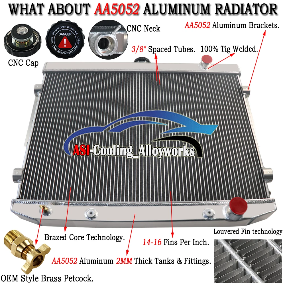 STORE HOME ALL ITEMS CONTACT US FEEDBACK Store categories All 2-Rows radiator 3-Rows radiator 4-Rows radiator Wheel Spacer Adapter Intercooler&piping kit Oil cooler Exhaust Head Pipe Silicon hose/pipe Electric Cooling Fan Manifold Tank Hose Radiator shroud + fan Radiator Hose Filler Neck&Radiator Cap Other 4 Row Radiator Shroud Fan For 1973-1978 Dodge Monaco Plymouth Mopar 7.2L V8 AT DESCRIPTION Welcome to our store!!! Cooling_alloyworks hope you are happy with your purchase. Thank you for choosing us, have a great day! All products support easy return & lifetime warranty !!! Orders paid before 9:30am support same-day shipping. (Notes : Pls make sure the post code&city is right, so that we can send your order in time) Good Feedback is very important to us. Any questions , please feel free to contact us.We will try our best to solve your problem. Pls check the item pictures and size to get the suitable items. Package Include: (as the pictures shown ) 1 X 4-Row AA5052 Aluminum Radiator 1 X CNC Machined Radiator Cap 1 X AA5052 Aluminum Shroud 1 X 16" Fans (Includes mounting kits) 1 X Thermostat Relay Kit Application: For Mopar 7.2 440 V8 Engine 1973-1974 For Chrysler Newport 1974-1978 For Chrysler New Yorker 1974-1978 For Plymouth Fury 1975-78 For Plymouth Roadrunner 1973-1974 For Dodge Coronet 1973-1976 For Chrysler Imperial 1974-1975 Please check compatibility (Both top hose and bottom hose on Passeger side) Radiator Configuration: Condition: New Brand: ASI Performance 4-Row of tubes Core Racing Design High Performance Racing Spec. Core Material: All Aluminum Tank Material: AA5052 Aircraft Grade Aluminum Surface Finish: Aircraft Grade Raw Aluminum Includes CNC machined filler neck and cap Core Dimensions: 18-3/4" H x 27-5/8" W Overall Dimensions: 24-1/8" H x 31" W Upper Inlet: 1-1/2" located on the Passenger side Lower Outlet: 1-3/4" located on the Passenger side Trans Cooler Included -1/8-27NPT - Mount Type: Bracket OEM Style Brass Petcock Drain. This radiator is easy to buy wrong, please check the Inlet & Outlet Location before you purchase! 16” Fans Details: Diameter: 16'' (Blade to Blade) Voltage: DC 12 Volts Maximum Fan CFM (Cubic Feet per Minute): 2150 cfm Wattage: 120Wattage Thickness (in): 2.500" Number of Blades: 10 S-Type blades Maximum Fan RPM (Revolution (s) Per Minute): 2,250 rpm Amp Draw: 10 amps Our electric fan has a 120w power motor, which is more powerful and efficient than other inferior fans selling on market. Most fans on eBay have a motor power of 80w, which cannot provide enough cooling for the engine. Moreover, they are usually assembled by the straight blades, it is cheaper and poor-quality and easy to get broken. 1. 120W electric motor to provide strong power and high rotation speed 2. S Blade pull push design, to make air flow more efficient and bring more cooling Effect 3. Lightweight and thin volume design, not only to save more engine bay space and also looks very well. 4. Provide extra temperature relay switch. Thermostat Kit: Universal fit for any automotive vehicle and electric fan. Activates by grounding electric fans at preset temperature. 180'F turn-on temperature, 165'F turn-off temperature. 3/8" NPT thread-in brass probe included. Probe typically threads into radiator, water outlet or manifold. Thermostat Relay Kit Instructions: RED + connect directly to battery. WHITE wire to ignition switch power source. BLACK goes to thermos switch. BLUE wire goes to the Fans. AA5052 Aluminum Shroud and Fans: The New Design fan and the AA5052 fan shroud effectively drive the heat over and out the engine compartment rather than thrusting it into the front of the engine. The fan shroud basically houses the fan blades securing it in place and keeping it from damaging the other engine components that may disturb the smooth and even operation of the engine. With excellent operating temperature management, allowable levels of engine temperature are stabilized. Investing in proper maintenance though will considerably benefit the ride and driving quality in maintaining the ideal working conditions of the engine. Shuttered design AA5052 fan shroud to guaranteed airflow passes high efficiently. Make your engine bay perfect! S blade fans, Push or Pull Type design, lightweight Plastic Durable Material. Additional with thermostat, professional matching advice, consider for every detail and needed. The Advantage of our Radiator: Our Radiator is made of AA5052 aircraft aluminum. It’s different from other sellers T-3303 Series. In fact, AA5052 series Aluminum is much better than T-3303 series. More than 90% of aftermarket manufacturers use the T-3303 series Aluminum, because it is cheaper and easier to get the material. However, T-3303 aluminum has many disadvantages, such as poor polishing effect, softness, easiness to scratch and corrode, poor heat dissipation effect. If the T-3303 aluminum radiator is operated in high pressure and high temperature for a long time, the leaking problem would occur very soon. AA5052 Aluminum is an Al-Mg alloy with good corrosion resistance, excellent reliability and cold workability and strength. The main alloying element of AA5052 is magnesium, which has good forming and processing properties. It is widely used in the manufacture of aircraft fuel tanks, oil pipes, and sheet metal parts of transportation vehicles and ships, hardware products, and electrical-appliance casings. This AA5052 Aluminum Radiator is designed to provide maximum cooling efficiency to prevent premature engine failure. Its light-weight, and high-heat transferring aluminum features a tube and fin design that, dramatically increases surface area that enables the heat to dissipate more efficiently. This AA5052 Aluminum Radiator is at least 30%-45% more efficient than stock ones. Most importantly, it has a much higher capacity for coolant than stock ones, which means that your cooling system will be more efficient and will be more resistant to temperature surges in racing app