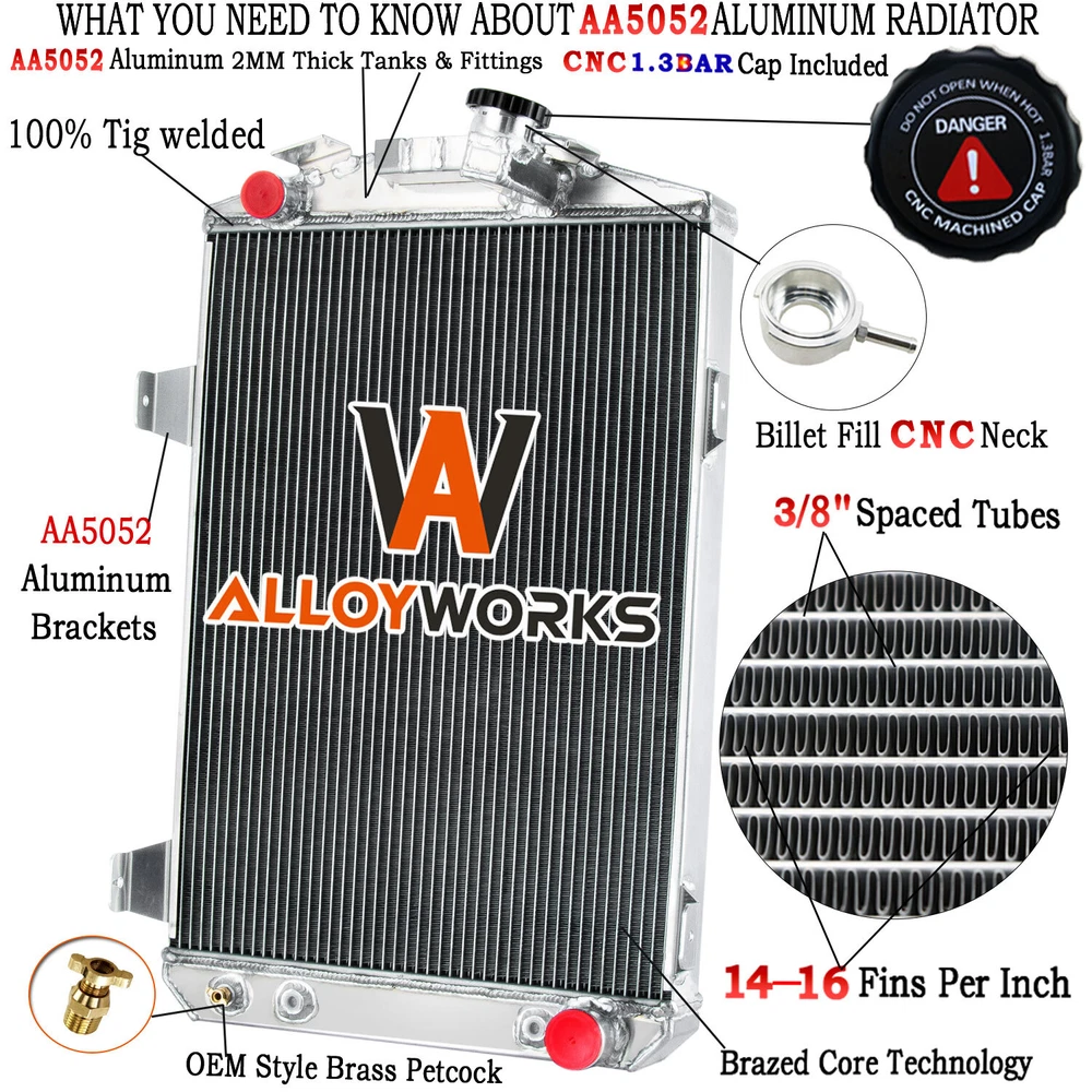 STORE HOME ALL ITEMS HOT ITEMS ADD TO FAVS CONTACT US ABOUT US FEEDBACK Store categories All Car & Truck Radiators Motorcycle Radiator Business-Industrial Radiators Motorcycle Exhaust Systems Intercooler Parts Oil Cooler Radiator Hose ATV UTV A-arms Store Newsletter Add my Store to your Favorites and receive my email newsletters about new items and special promotions! DESCRIPTION Package Include: 1 X 4-Row AA5052 Aluminum Radiator 1 X CNC Machined Radiator Cap This Radiator Size: Row Count: 4 Rows Core Size: 18" x 24" Overall Size: 29 1/4" x 20 3/8" Transmission Cooler: 1/2-20 UNF Outlet Diameter: 1 3/4" Inlet Diameter: 1 1/2" Inlet Location: Driver Outlet Location: Passenger Features : 1.Made from Aircraft AA5052 grade aluminum for prolonged lifespanand with raw aluminum finish 2.Brazed core technology to guarantee optimum performance and dependability 3.All AA5052 Aluminum 2mm thick tanks and fittings,Ensure it's hard and durable 4. Billet Aluminum CNC machined fill neck rugged and durable 5. Ergonomic design CNC machined cap with Engraved craftsmanship, anodized treatment 6. OEM style brass petcock drain much better than other plastic one on eBay Application: For 1930 Chevrolet Car Chevy V8 Conversion Part No.CC1930CH Description: This AA5052 Aluminum Radiator is designed to provide maximum cooling efficiency to prevent premature engine failure. Its light-weight, and high-heat transferring aluminum features a tube and fin design that, dramatically increases surface area that enables the heat to dissipate more efficiently. This AA5052 Aluminum Radiator is at least 30%-45% more efficient than stock ones. Most importantly, it has a much higher capacity for coolant than stock ones, which means that your cooling system will be more efficient and will be more resistant to temperature surges in racing applications. 1.Made of AA5052 aircraft aluminum,stronger than other popular alloys and has increased corrosion resistance. 2.Brazed core technology to guarantee optimum performance and dependability. 3. AA5052 Aluminum 2mm thick tanks and fittings,Ensure it's hard and durable. 4.Higher density core: cooling rows are spaced 3/8" apart.giving you 25% more rows within the core than other aluminum radiators. 5.14-16 cooling fins per inch,giving you approximately 1500 more cooling fins than other aluminum radiators,throws off much more heat. ABOUT US PAYMENT SHIPPING FEEDBACK CONTACT US ABOUT US ALLOYWORKS radiator is a performance aftermarket car parts company providing a variety of aluminum radiator for all sorts of makes and models. Shop with us with confidence you would be receiving the best quality products for the value. No matter if it's for a car or truck we have exactly what you're looking for! Browse through our eBay store if you wish to find out more of what we have to offer. thanks PAYMENT Paypal ONLY --the easiest and most secure way to pay on line SHIPPING Items will be shipped 24 hours of payment verification. We do not offer local pick ups for any orders made through eBay. We use United States Postal Service (USPS), United Parcel Service (UPS) or Federal Express (FedEx) to ship our packages. Ground Carriers do not deliver to PO BOX or areas : Hawaii (HI) , Alaska (AK) , Puerto Rico (PR) , Army Post Office (APO) , Fleet Post Office (FPO), PR , HI , AK , APO , FPO ,Canada and International Countries. RETURNS We accept return in 30 days and appreciate communication in advance! All return items MUST be in brand new condition which means the item is never installed and kept in the original packaging. You must contact us to request a Return Authorization Number (RA#) before you send anything back. With RA#, we may address return issues with high efficiency. Without RA#, we may fail to find your transaction. Appreciate your understanding! Shipping Damage Shipping damage is any item/package suspected of being broken or damaged in anyway during the shipping process. We purchase full insurance for this, however the damage must be reported to us within 3 days of receiving the package. FEEDBACK CONTACT US STORE HOME HOT ITEMS ADD TO FAVS CONTACT US ABOUT US FEEDBACK Copyright © Alloyworks_performance_radiator. All rights reserved Package Include: 1 X 4-Row AA5052 Aluminum Radiator 1 X CNC Machined Radiator Cap This Radiator Size: Row Count: 4 Rows Core Size: 18" x 24" Overall Size: 29 1/4" x 20 3/8" Transmission Cooler: 1/2-20 UNF Outlet Diameter: 1 3/4" Inlet Diameter: 1 1/2" Inlet Location: Driver Outlet Location: Passenger Features : 1.Made from Aircraft AA5052 grade aluminum for prolonged lifespanand with raw aluminum finish 2.Brazed core technology to guarantee optimum performance and dependability 3.All AA5052 Aluminum 2mm thick tanks and fittings,Ensure it's hard and durable 4. Billet Aluminum CNC machined fill neck rugged and durable 5. Ergonomic design CNC machined cap with Engraved craftsmanship, anodized treatment 6. OEM style brass petcock drain much better than other plastic one on eBay Application: For 1930 Chevrolet Car Chevy V8 Conversion Part No.CC1930CH Description: This AA5052 Aluminum Radiator is designed to provide maximum cooling efficiency to prevent premature engine failure. Its light-weight, and high-heat transferring aluminum features a tube and fin design that, dramatically increases surface area that enables the heat to dissipate more efficiently. This AA5052 Aluminum Radiator is at least 30%-45% more efficient than stock ones. Most importantly, it has a much higher capacity for coolant than stock ones, which means that your cooling system will be more efficient and will be more resistant to temperature surges in racing applications. 1.Made of AA5052 aircraft aluminum,stronger than other popular alloys and has increased corrosion resistance. 2.Brazed core technology to guarantee optimum performance and dependability. 3. AA5052 Aluminum 2mm thick tanks and fittings,Ensure it's hard and durable. 4.Higher density core: cooling rows are spaced 3/8" apart.giving you 25% 
