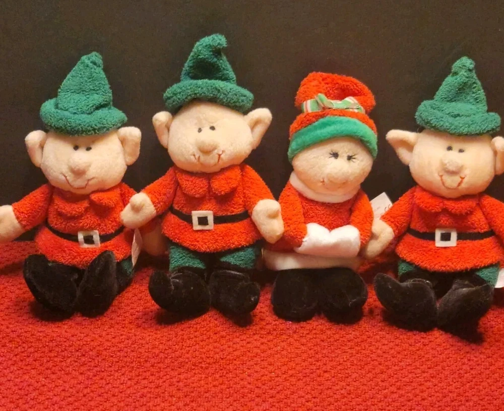 4 Russ Vtg Elf Plushes Christmas Stuffed Toys Decoration Holiday