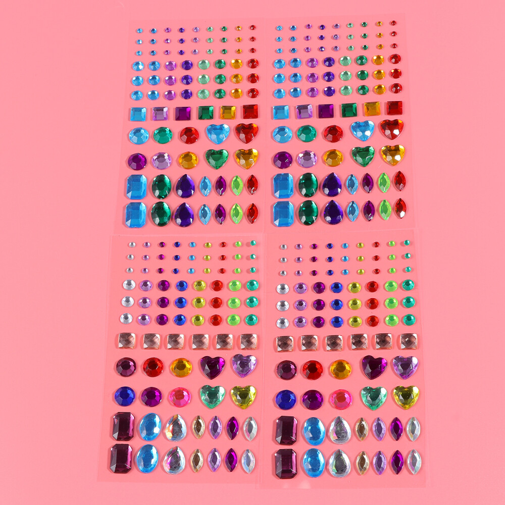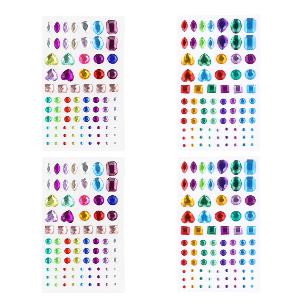 4 Self-Adhesive Flat Back Rhinestone Jewel Stickers for Crafting