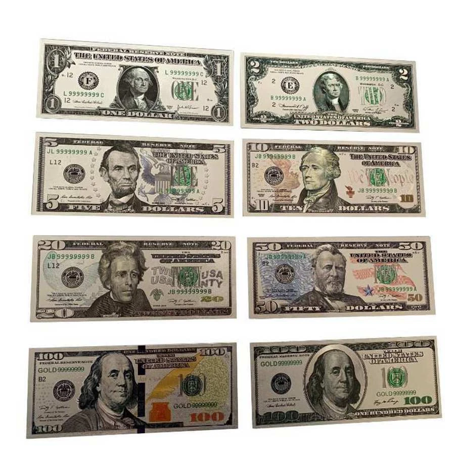 Features: Quality: 100% High Quality Material: PVC ,gold foil plated Size: 14.6*6.5 CM Usage: For Collection, Home, Office Decor, Birthday , Business Gift And So On Package Includes: 4set ( 8pcs/s et )colo red banknotes ( US $ 100 , $1, $2, $5, $10, $20, $50, $100) Note:This is NOT real money, these are novelty bills and are for collecting only, the bills have NO cash value!!