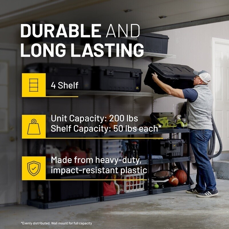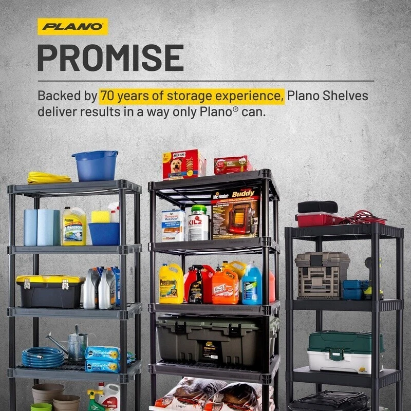 You may also like 48 Inch Heavy Duty 3 Tier Steel Storage Shelving Unit Adjustable Organizer New 225.06 USD Free shipping 4-Pack 5-Shelf Garage Storage Plastic Shelves Shelving Unit Rack Heavy Duty 74"H 295.97 USD Free shipping Durable 5-Tier Plastic Storage Shelf Unit Organizer Rack Home Garage US 87.95 USD Free shipping 72" 5 Shelf Adjustable Steel Boltless Garage Shelf Unit Storage Racks Shelving 89.58 USD Free shipping Versatile Plastic Garage Shelves Storage Shelving Heavy-duty Durable New 5 Shelf 95.92 USD Free shipping Adjustable 5-Shelf Steel Shelving Unit Heavy-Duty Storage Organizer Indoor New 270.4 USD Free shipping 5 Shelf Storage Shelves Shelving Organize Heavy Duty Closet Garage Plastic Black 130.99 USD Free shipping 3 Shelf Storage Shelving Unit Rack Adjustable Heavy Duty Kitchen Garage Metal US 47.4 USD 49.89 USD Free shipping 5% off Garage Storage System Shelf Kit 3 Heavy Duty Wire Shelves Easy Installation New 128.0 USD Free shipping 3 Tier Freestanding Wire Storage Shelves Easy Assembly Indoor Organizer New 65.07 USD Free shipping 4 Tier Adjustable Steel Wire Shelf Unit Storage Rack Garage Organization White 96.0 USD Free shipping 4 Tier Plastic Garage Shelving Unit Heavy Duty Storage 400 lbs Capacity New 63.97 USD Free shipping Organize your home goods, pack away your hunting gear during the offseason, or store all your hobby supplies in one place with Standard Duty Storage Shelves. Each of the 4 heavy-duty plastic shelves can hold up to 50 lbs for a total storage capacity of 200 lbs. Life can box you in Work, Household chores, Every after-school activity ever. Ironically, the best way to break free is with a box. And not just any box, but a . From tackle boxes to storage trunks to coolers all as smartly designed as they are rugged. So you can keep all your gear neatly stowed and ready to throw in the truck whenever adventure calls. Hit the road while the bite is hot. And be ready to make your getaway every chance you get. Product is made for adult use. PLANO PLASTIC STORAGE SHELVES: Organize your home, closet, garage, laundry room or office with Standard Duty Shelving Units. 200LB STORAGE CAPACITY: Each of the 4 plastic shelves has a maximum weight capacity of 50lbs. The full shelving unit can easily accommodate up to 200lbs of total weight. DURABLE CONSTRUCTION: Made from heavy-duty, impact resistant plastic, this storage shelf is extremely durable and built to last. PROUD TO SUPPORT: Based in our namesake of , Illinois, Molding Company is proud to support industry and jobs by manufacturing many of our products . PRODUCT SPECIFICATIONS: Total Unit Dimensions: 48 inches tall x 21 inches long x 14 inches wide. Each shelf can hold items up to 13 inches tall. The unit is easy to assemble with no tools required. VERSATILE USE: The deep storage shelves are perfect for organizing home goods, tools, shoes, camping gear, fishing equipment, hunting supplies and more. Great for all ages - adults, teens, seniors, etc. PLANO has been helping anglers, hunters and outdoor-loving families bust out of their routines for over 70 years. BE PLANO READY. Enjoy your pursuit to the fullest. You may also like Ultra Absorbent Fresh Scent Training Pads 100Count Leak Proof Pet Pads New 37.07 USD Free shipping Rose Gold Bartender Kit Cocktail Shaker W/ Bamboo Stand 23pc Mixology Tools New 65.21 USD 68.64 USD Free shipping 5% off Clear Shoe Box Organizer Stackable Storage Bins Magnetic Door Plastic 9-Pack New 66.56 USD 70.06 USD Free shipping 5% off 2-Step Folding Stool Steel Lightweight Max Reach 7ft 11in Safety Support New 63.98 USD Free shipping Collapsible Steel Mesh Fish Trap W/ Spring Loaded Doors Panfish Basket Useful US 28.65 USD 30.16 USD Free shipping 5% off Rechargeable Tactical Flashlight 1000 Lumens 1 Mile Beam Power Bank Waterproof 63.95 USD Free shipping Rustic End Table W/ Drawer Storage Nightstand Living Room Bedroom Indoor Outdoor 126.4 USD Free shipping Set Of 2 Industrial Round Bar Stools W/ Footrest Easy Assembly Kitchen Dining US 62.83 USD 66.14 USD Free shipping 5% off Teriyaki & Chicken 20 Serving Shelf-Stable Emergency Meal for Food Storage US 44.7 USD Free shipping Gypsum Board Cutter Tape PenAuto Cutting Portable Drywall Cutting Artifact Tool 14.83 USD 15.61 USD Free shipping 5% off Organic Energy Chews Pomegranate Passionfruit USDA Certified Gluten-Free Vegan 39.81 USD Free shipping Computer Desks W/ 4 Storage Shelves Keyboard Tray Metal Study Room Portable New 127.98 USD Free shipping