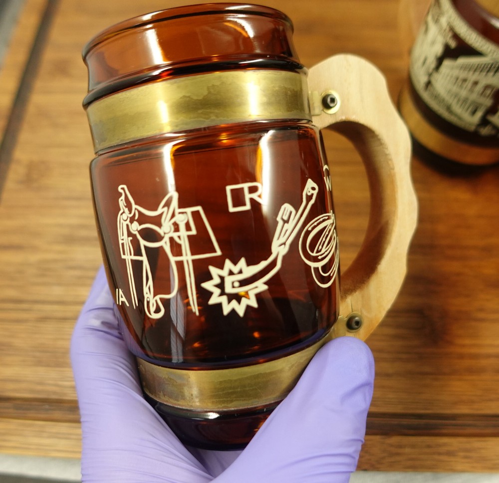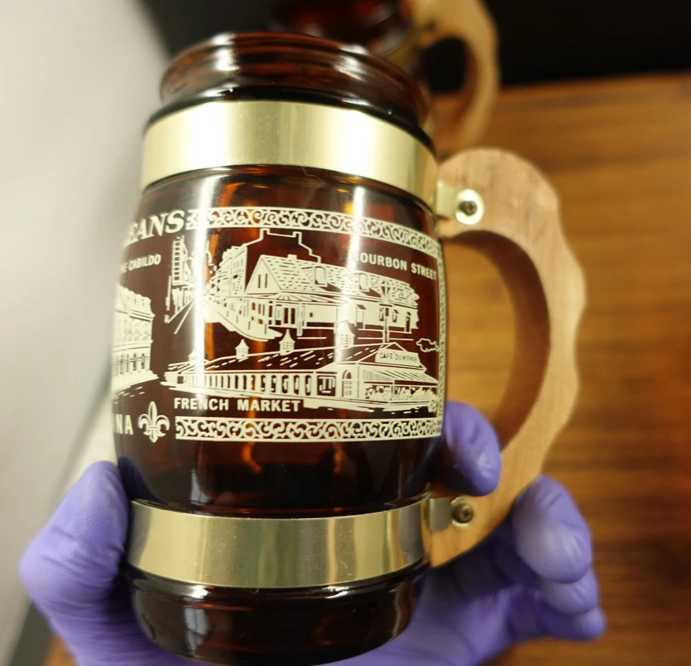 See Pictures for Condition Before buying: Has some scratches/wear, slight ware/fading to the design, ware to the wooden handles, has some residue/water/washer stains that might be cleaned with further washing If you have any questions, Feel Free to Message me!